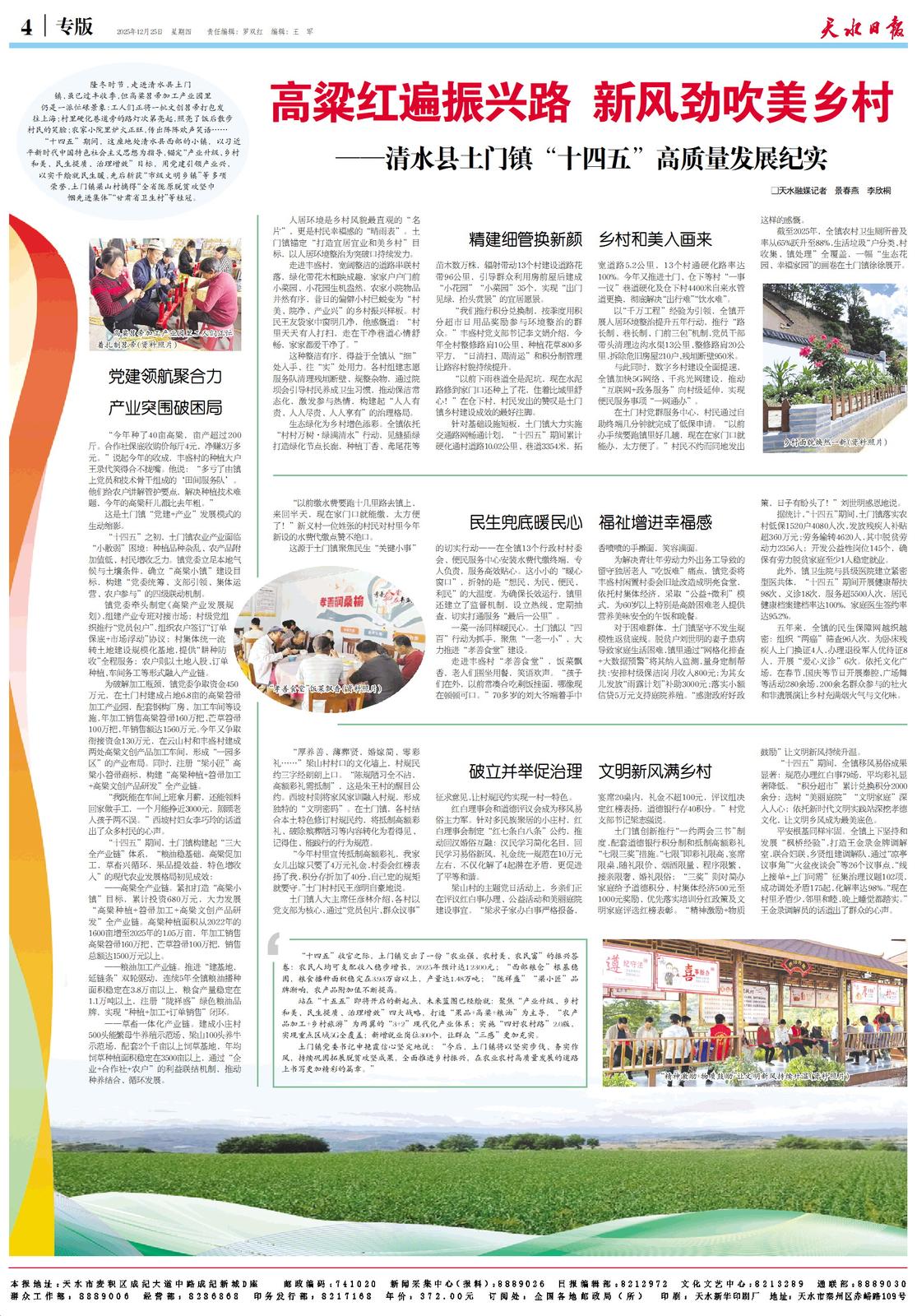 “十四五”期间,这座地处清水县西部的小镇,以习近平新时代中国特色社会主义思想为指导,锚定“产业升级、乡村和美、民生提质、治理增效”目标,用党建引领产业兴,以实干绘就民生暖,先后斩获“市级文明乡镇”等多项荣誉,土门镇梁山村摘得“全省陇原脱贫攻坚巾帼先进集体”“甘肃省卫生村”等桂冠。
