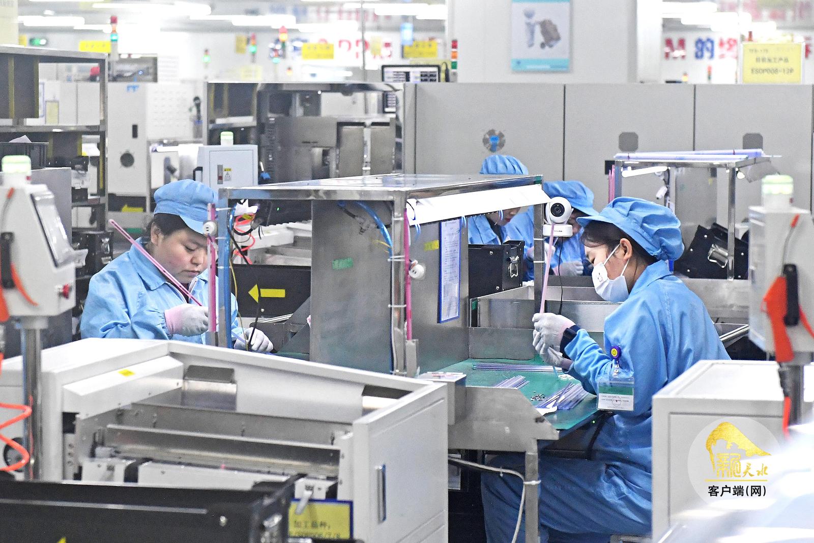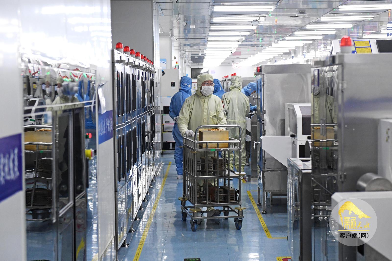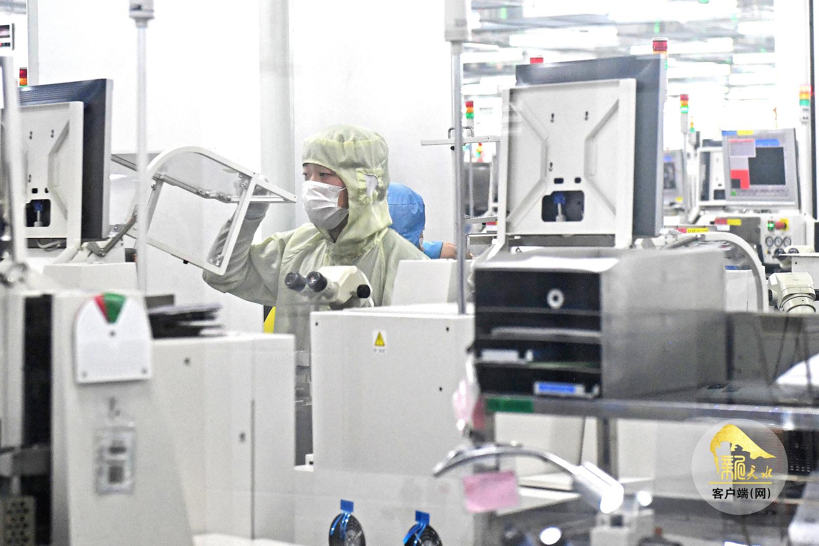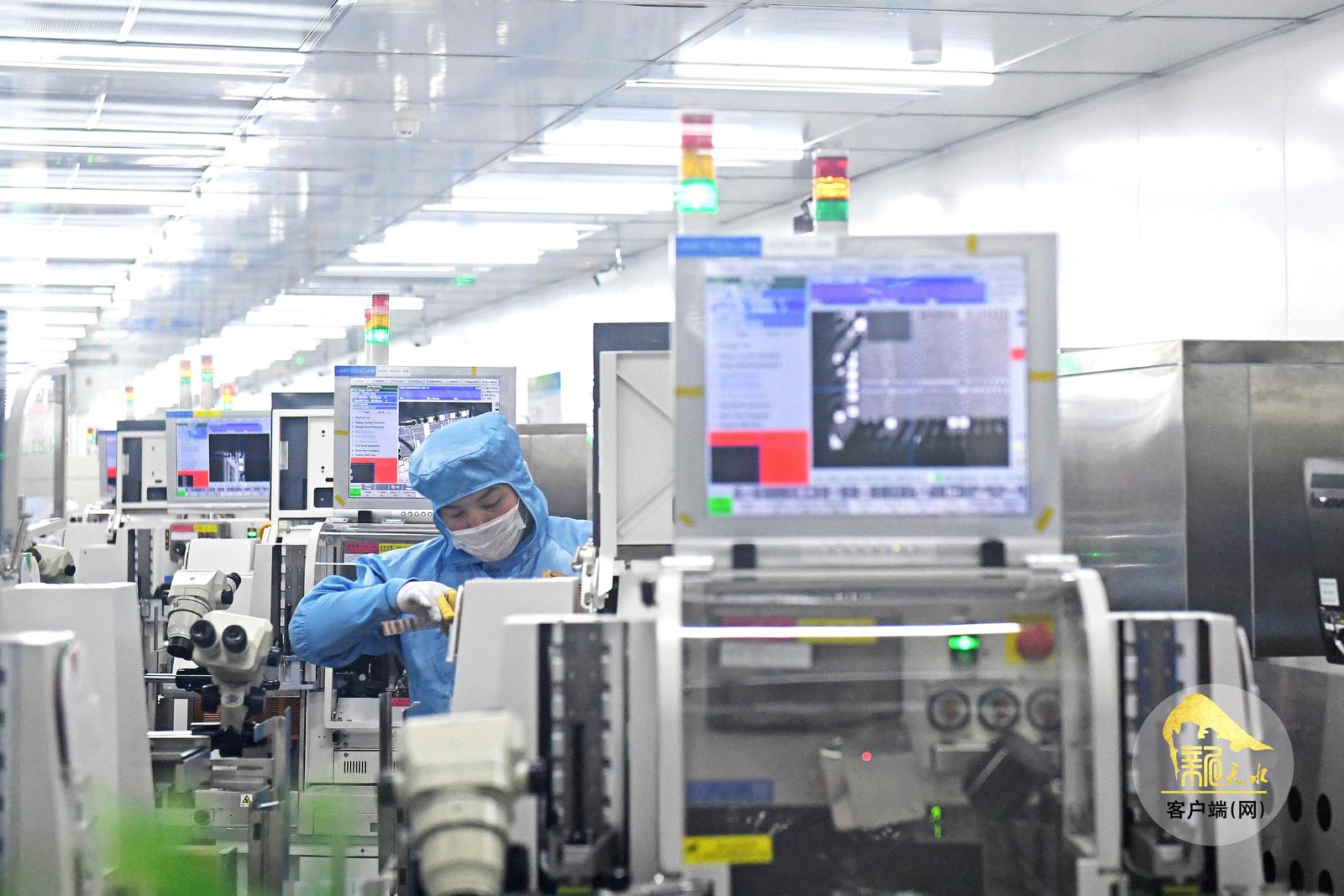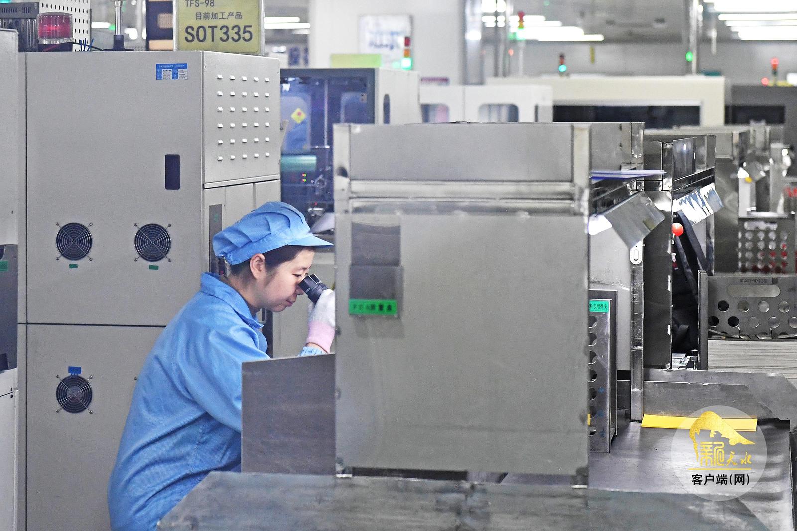 12月25日,天水华天电子集团股份有限公司车间里的工人在集成电路封装线上抓紧生产。