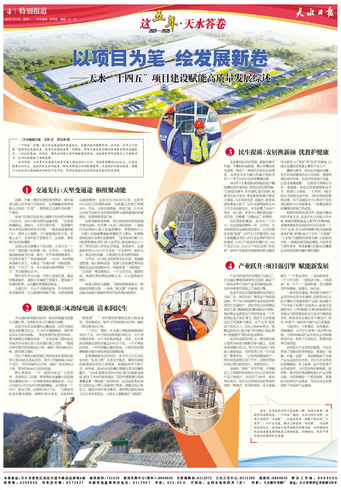 “十四五”时期,是天水发展进程中夯基垒台、积蓄动能的重要阶段。五年来,全市上下坚持“谋项目就是谋未来,抓项目就是抓发展”的理念,将项目建设作为推动高质量发展的关键抓手。一批批打基础、利长远、惠民生的重大项目相继落地实施,为这座城市的发展注入了强劲动力,也为未来绘就了清晰蓝图。