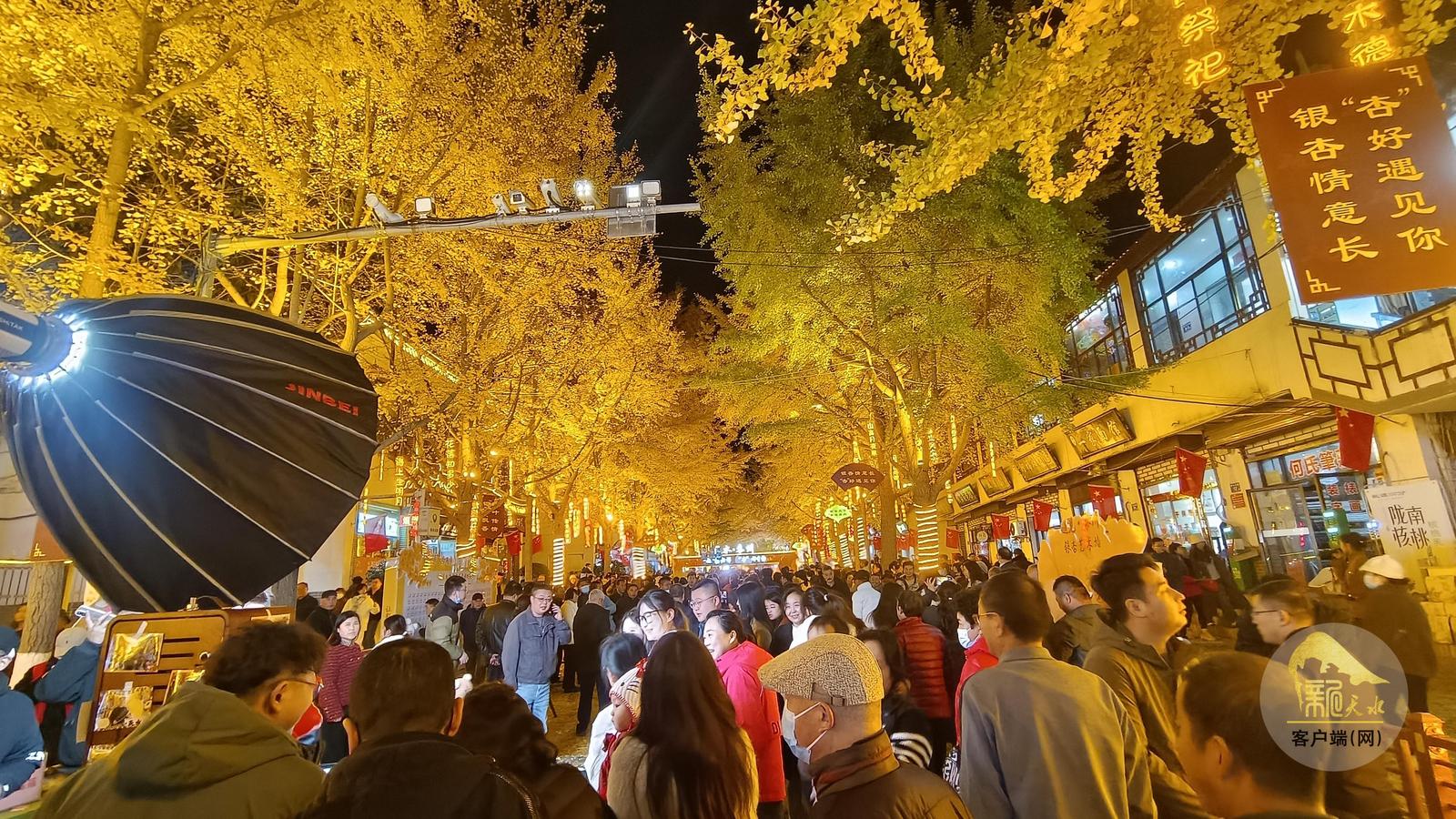 初冬的青年北路,银杏叶如碎金铺地,"黄金大道"上人头攒动。西班牙友人在此拍照打卡,体验书法艺术;衔月阁内,"古建+实景演艺"让转角楼变成时尚艺术空间;美食街上,麻辣烫摊位前香气扑鼻,游客排起长队。"一碗麻辣烫20多块钱,还收到了市民送的纸巾、饮料,太暖心了!"来自陕西咸阳的游客师女士笑着说,她原本只为美食而来,却被丰富的文化体验留住了脚步。