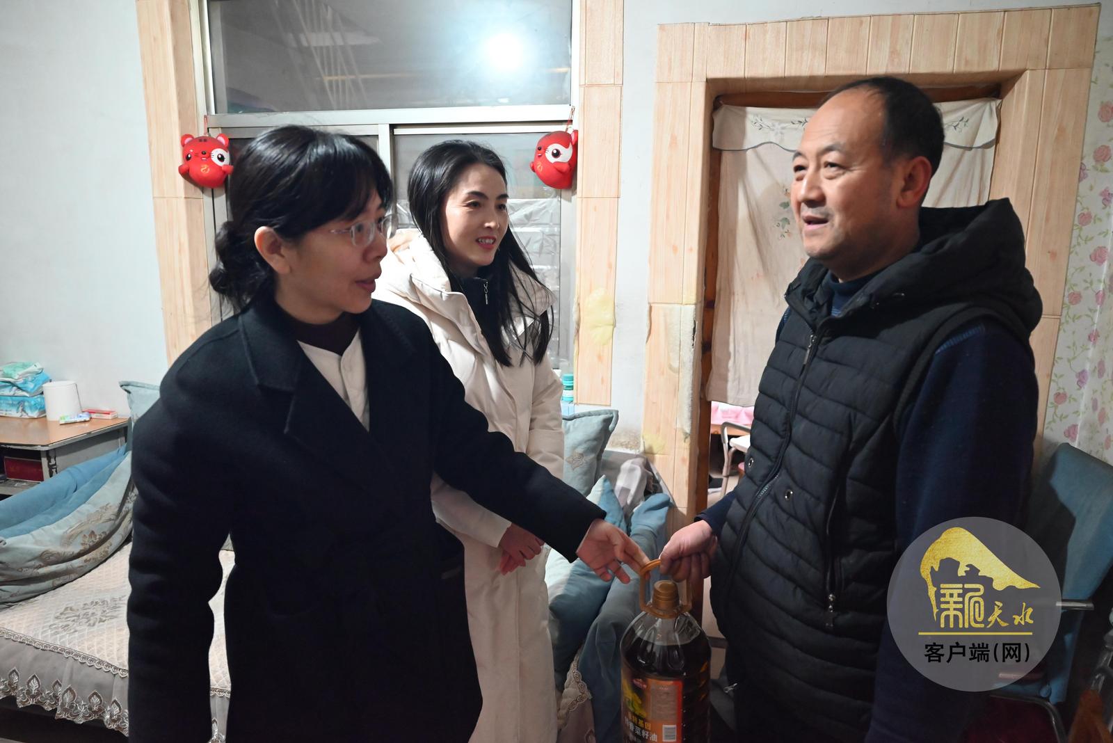 在秦州区七里墩街道和谐路社区、东十里社区,麦积区花牛镇吴家庄村等地的困难残疾人家中,慰问人员与他们促膝谈心,拉家常,细致了解家庭经济、身体康复情况及实际困难,送去慰问品和慰问金,鼓励他们树立信心、战胜困难。