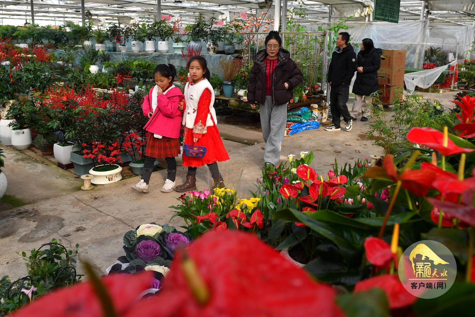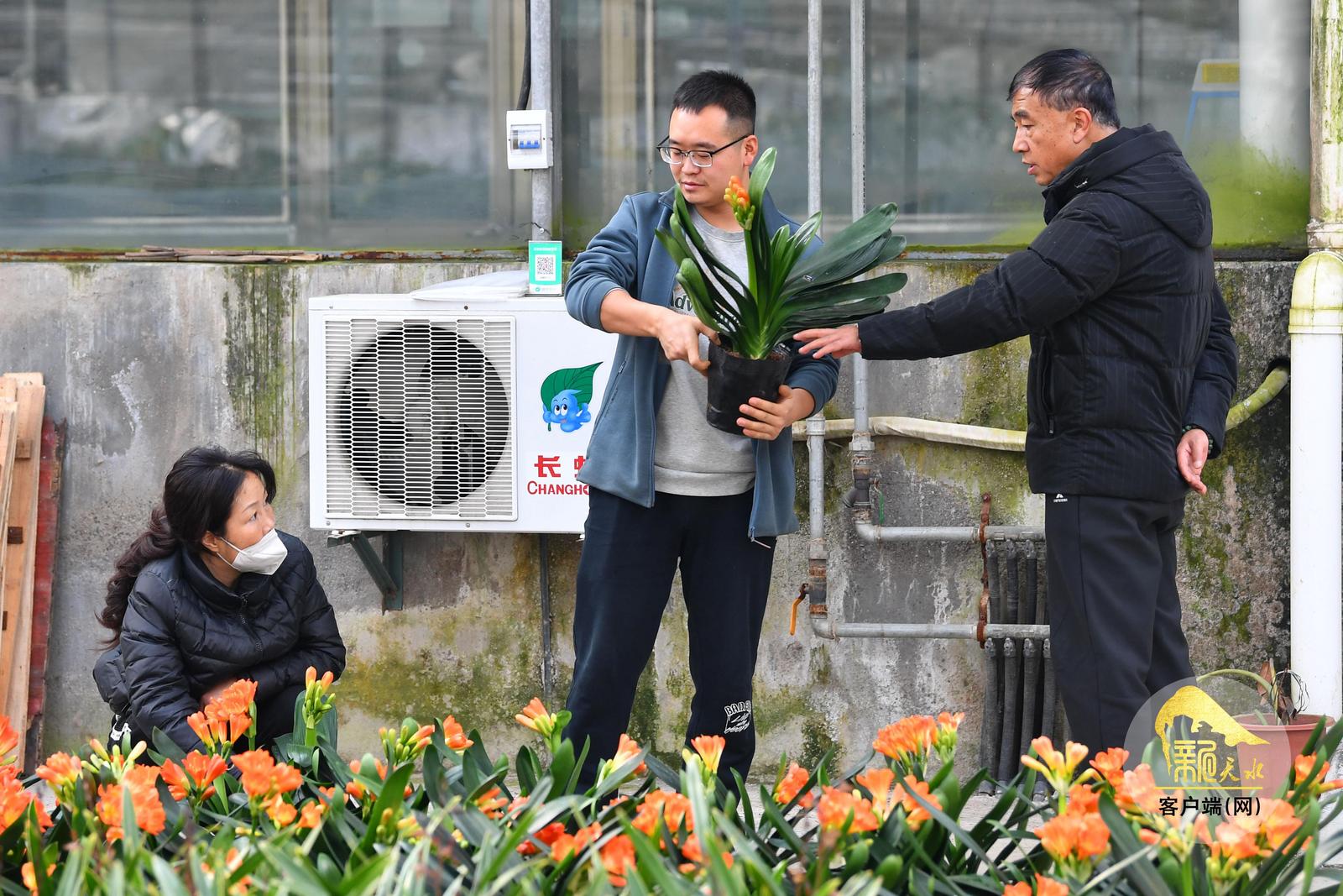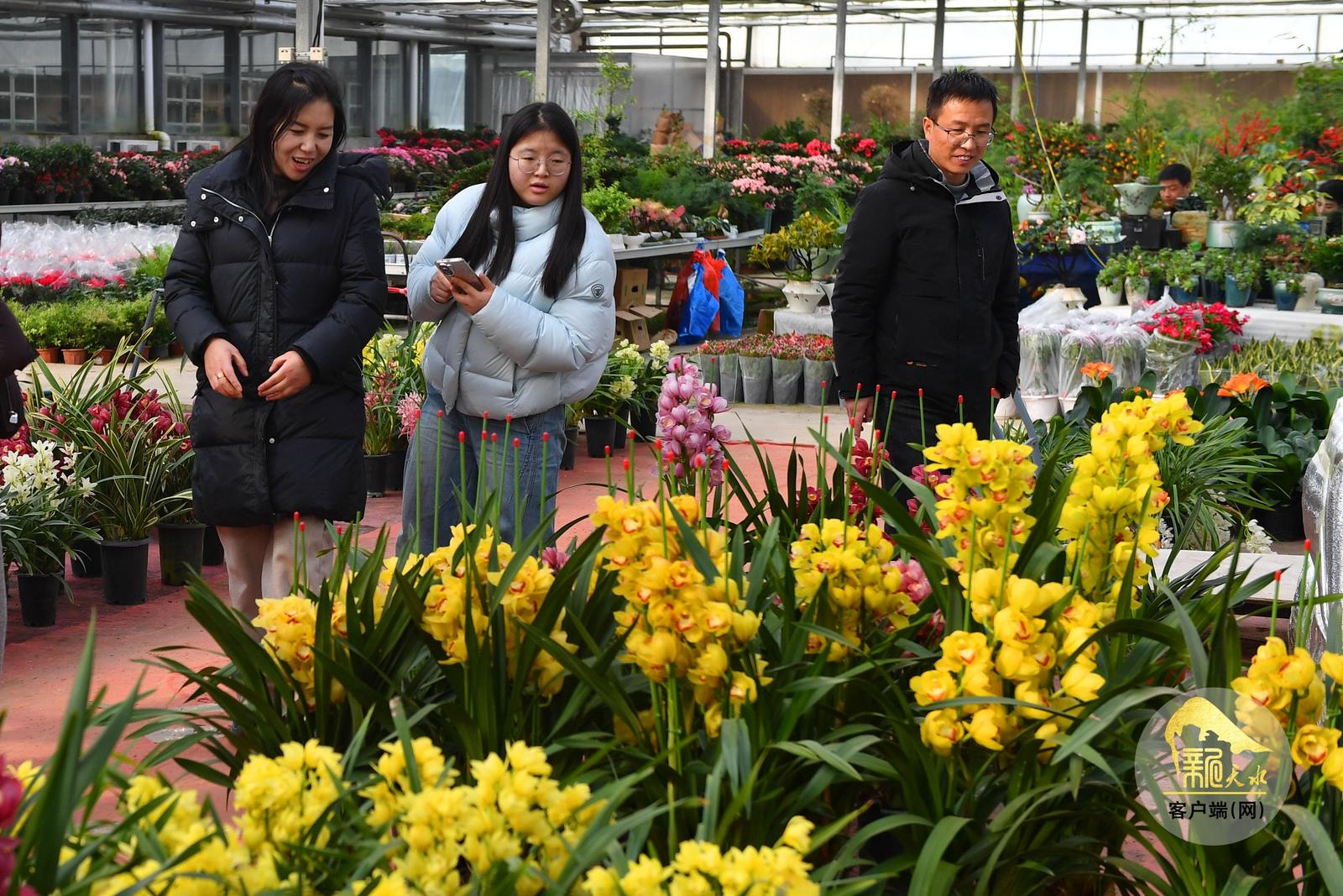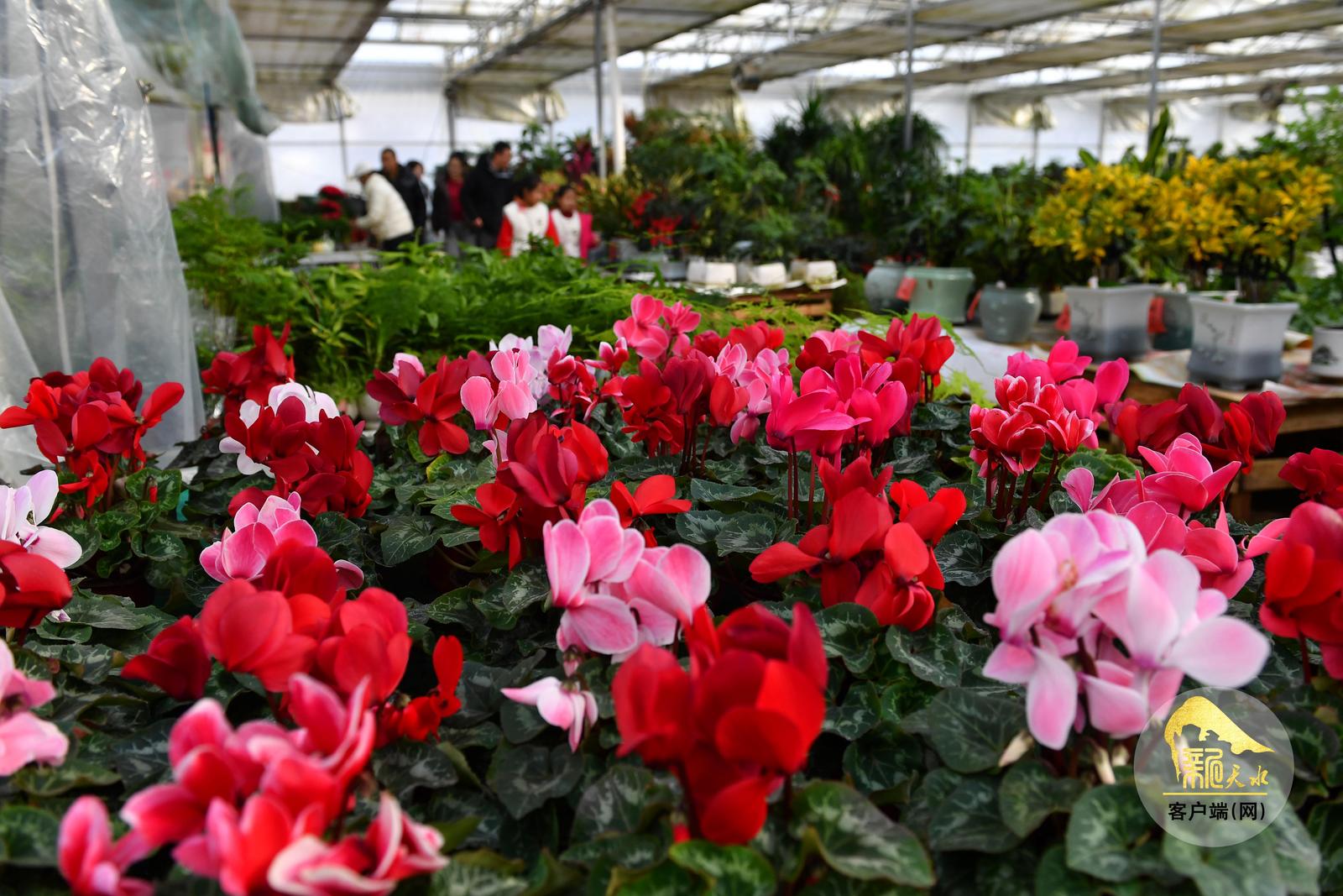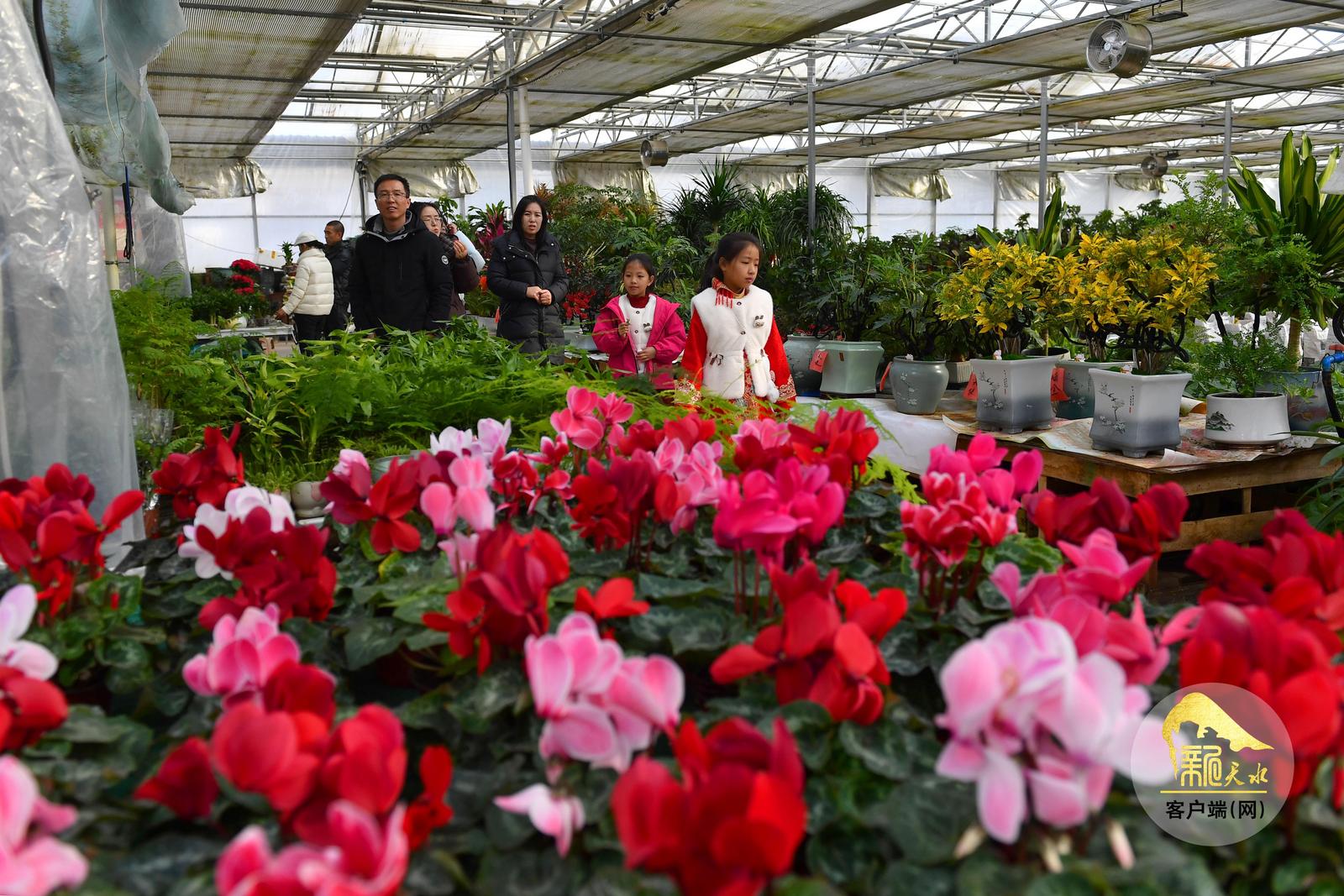 随着春节临近,天水市各大花卉市场年宵花陆续上市,进入销售旺季,吸引了众多市民前来赏花、购花,为即将到来的新春佳节增添喜庆气氛。(天水融媒记者 周文涛 摄)