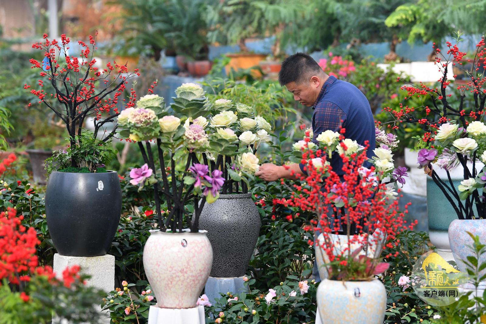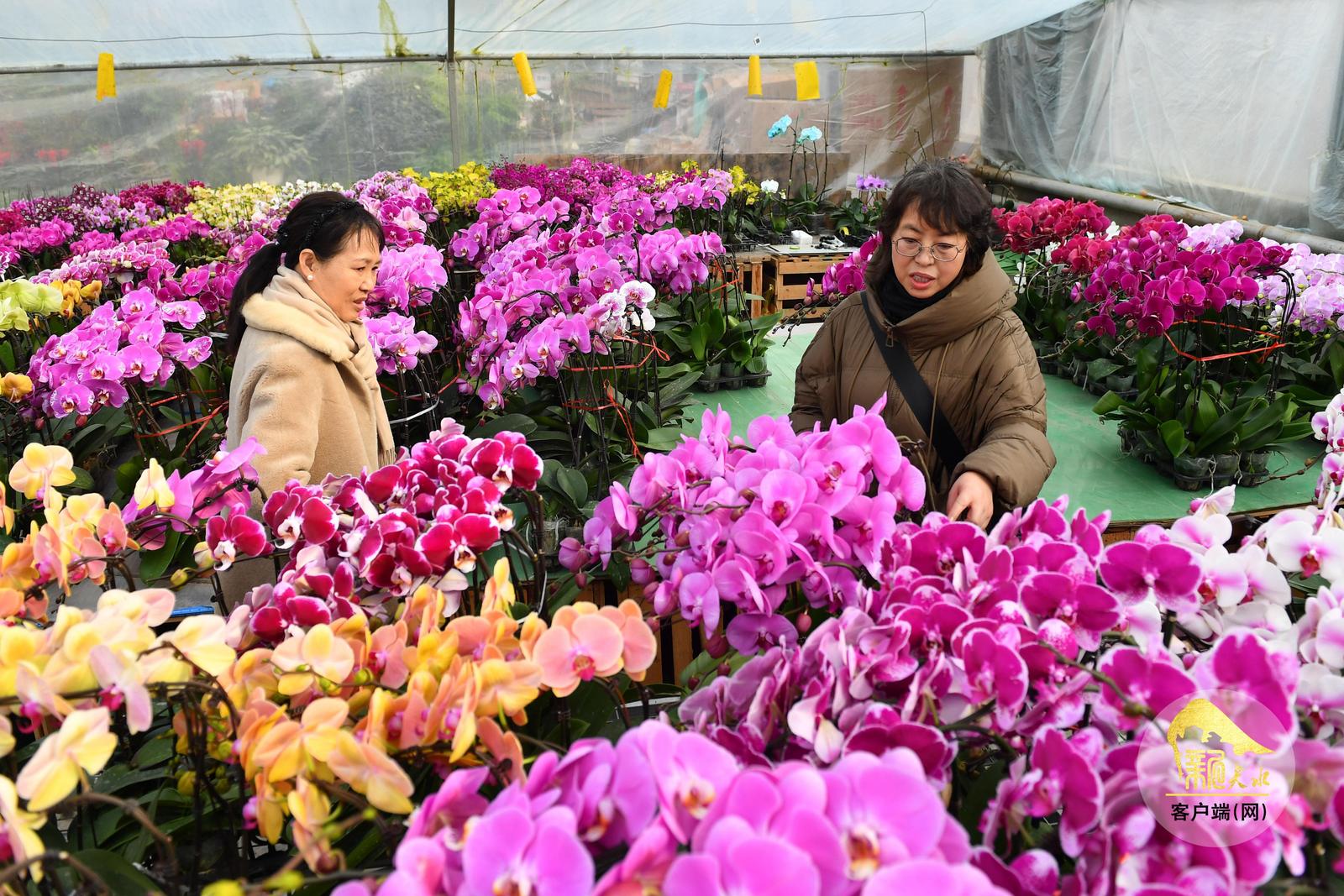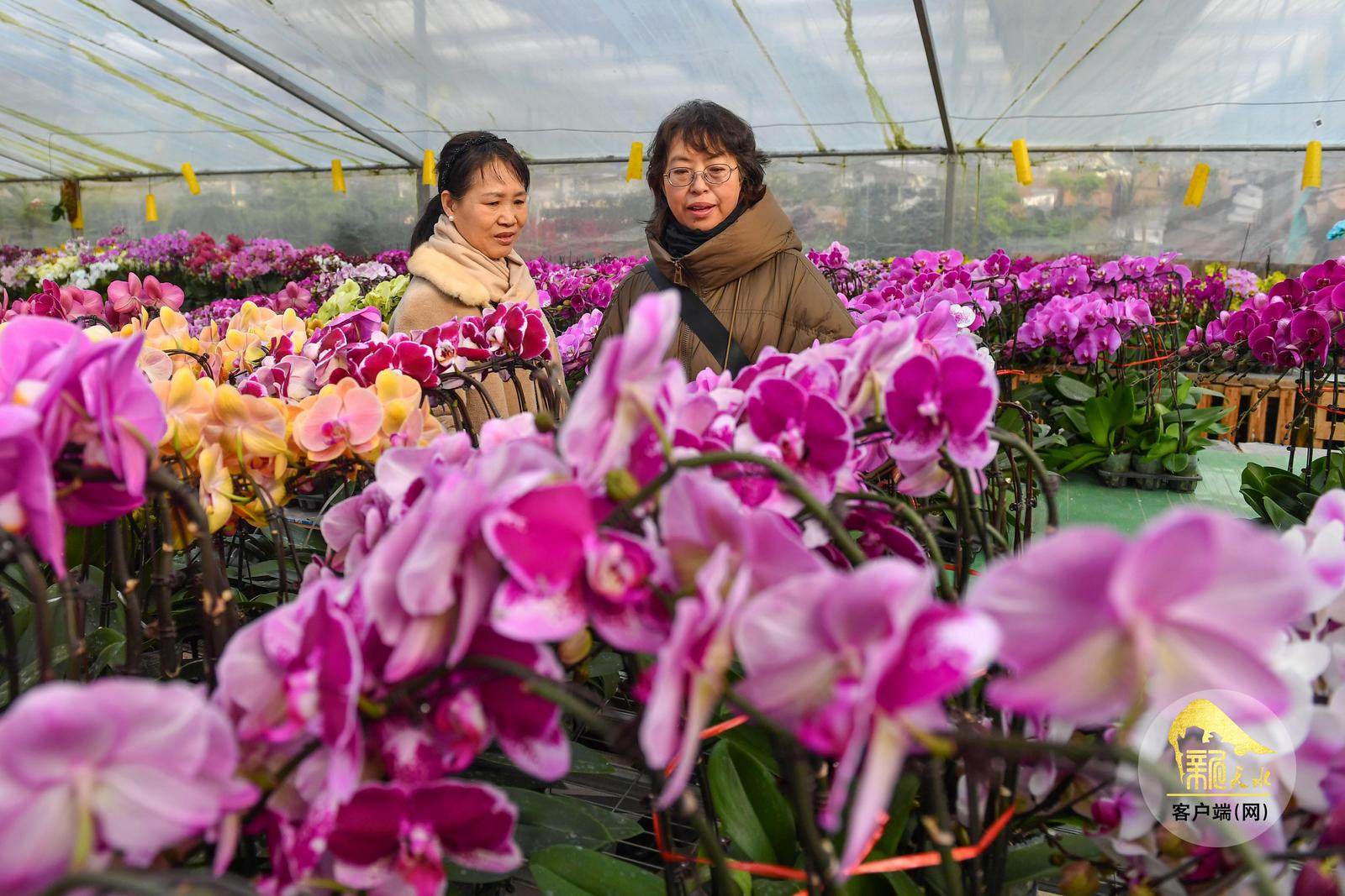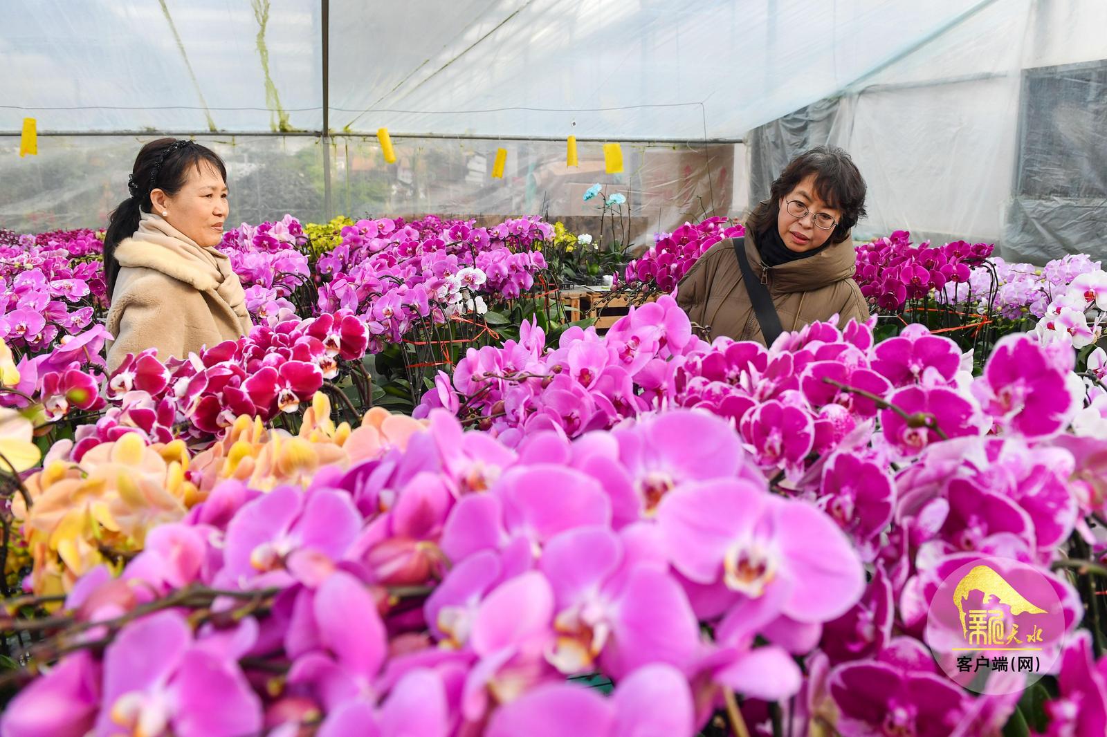 随着春节临近,天水市各大花卉市场年宵花陆续上市,进入销售旺季,吸引了众多市民前来赏花、购花,为即将到来的新春佳节增添喜庆气氛。(天水融媒记者 周文涛 摄)