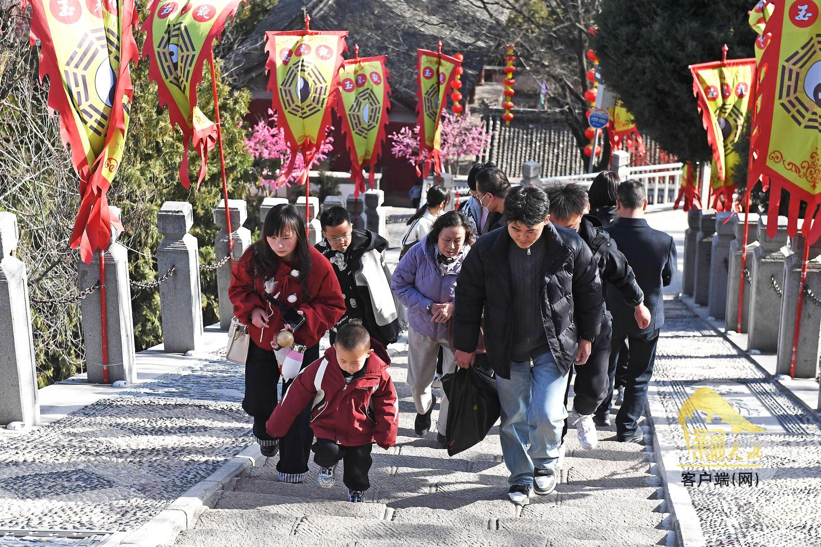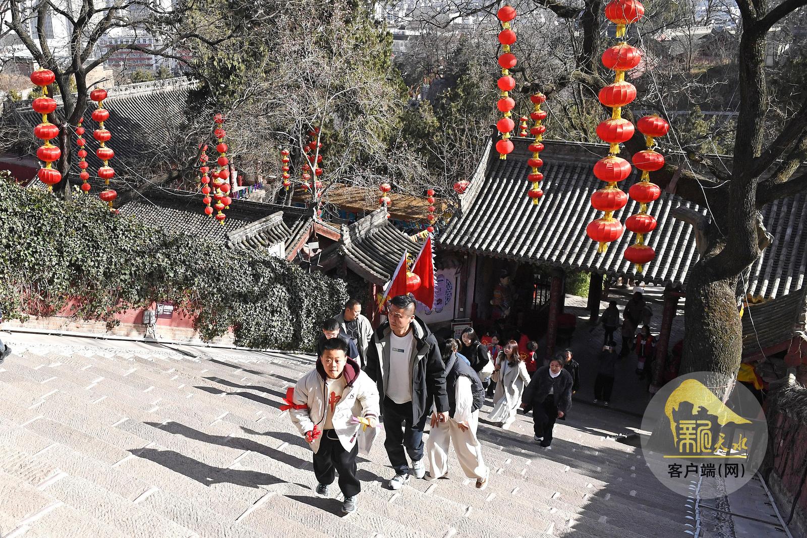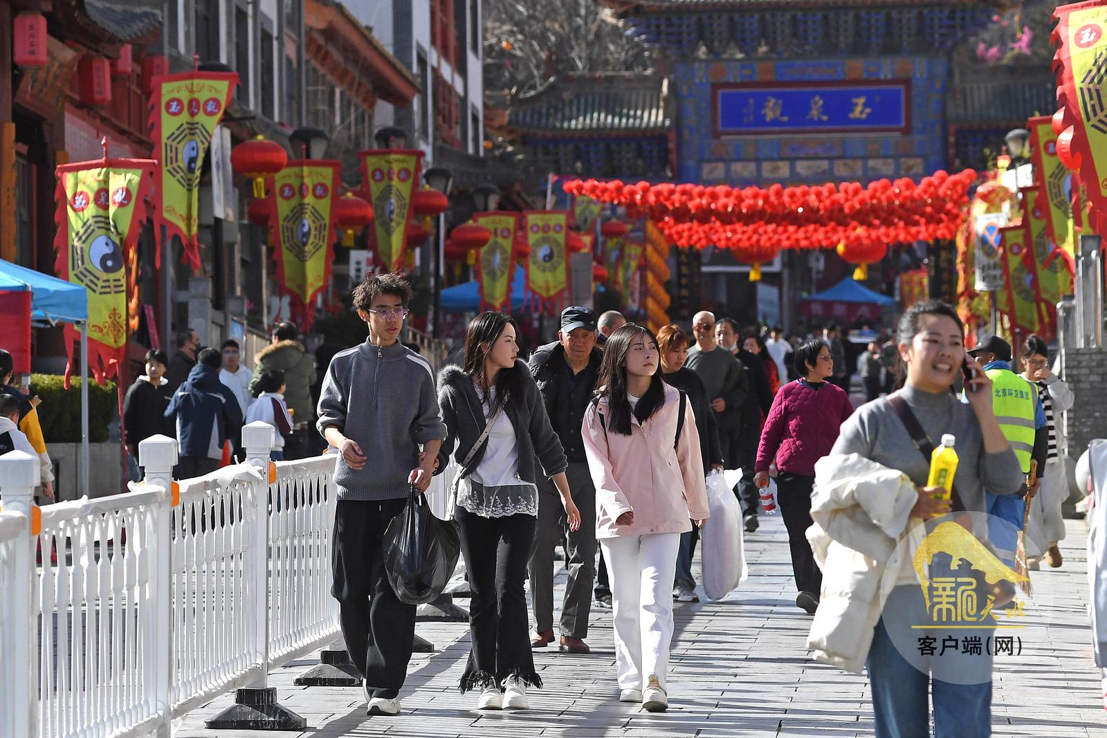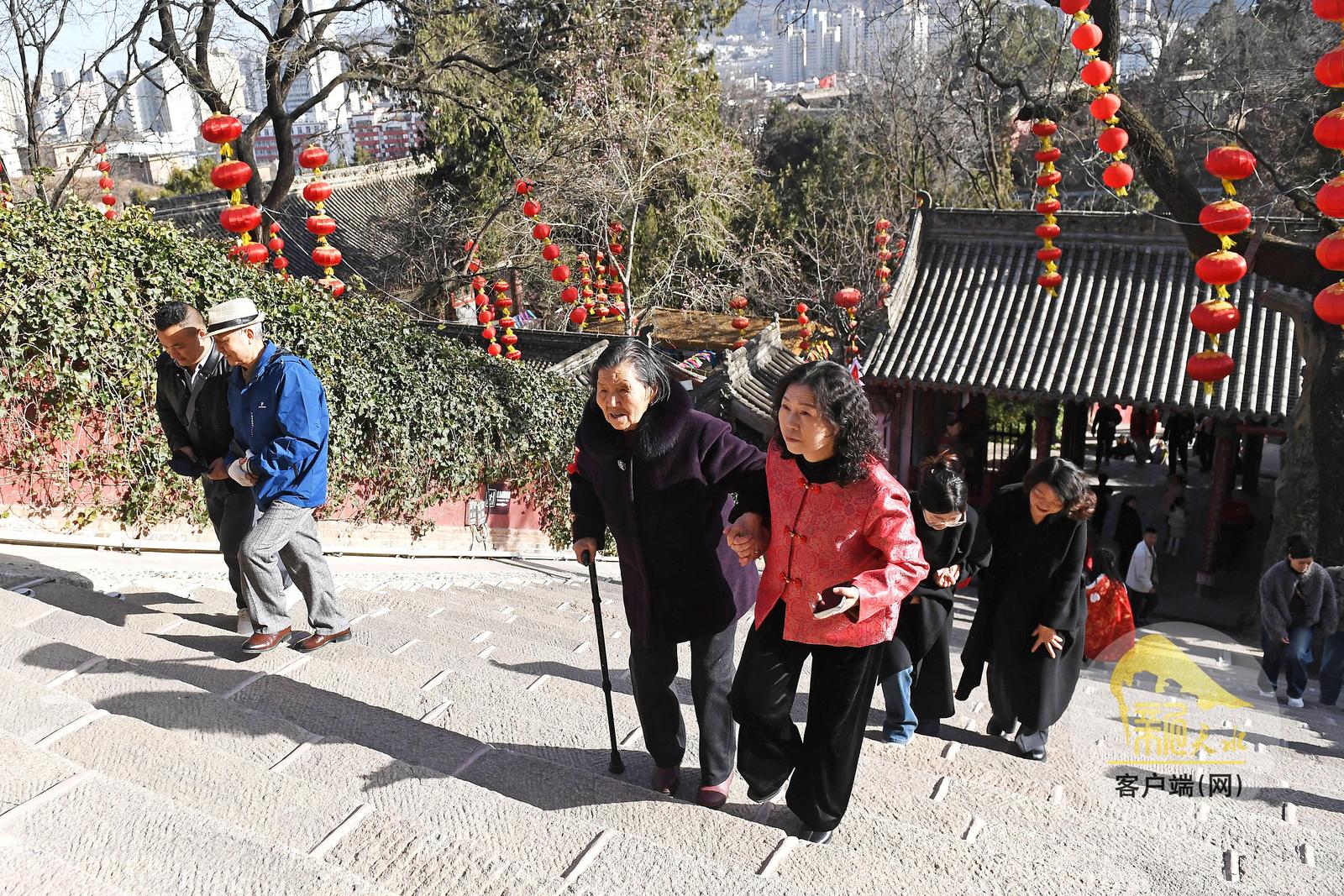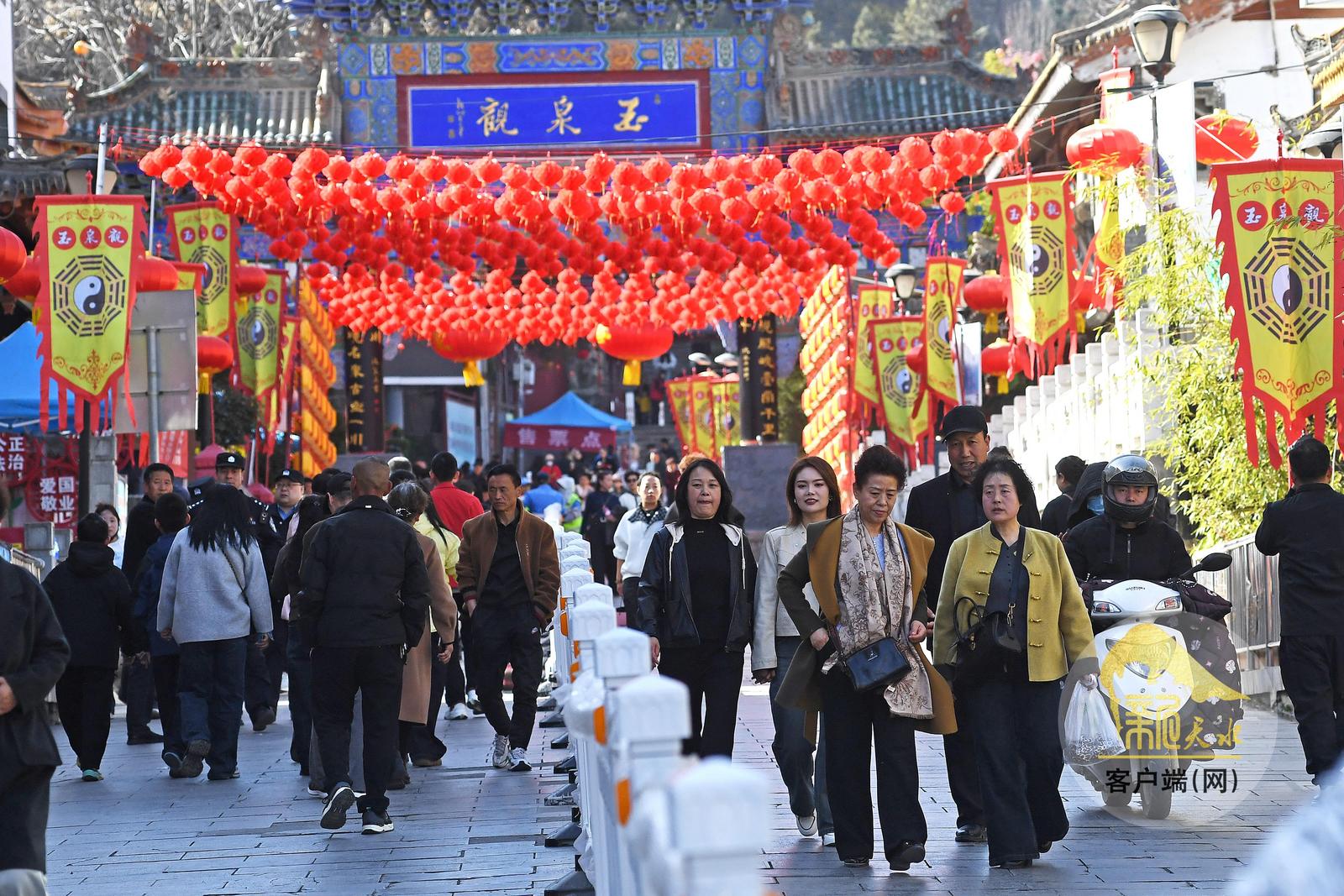 2月24日(农历正月初八),在秦州区玉泉景区,玉泉观“上九会”民俗文化活动热闹喜庆,天水市民相约结伴来此祈福纳祥。