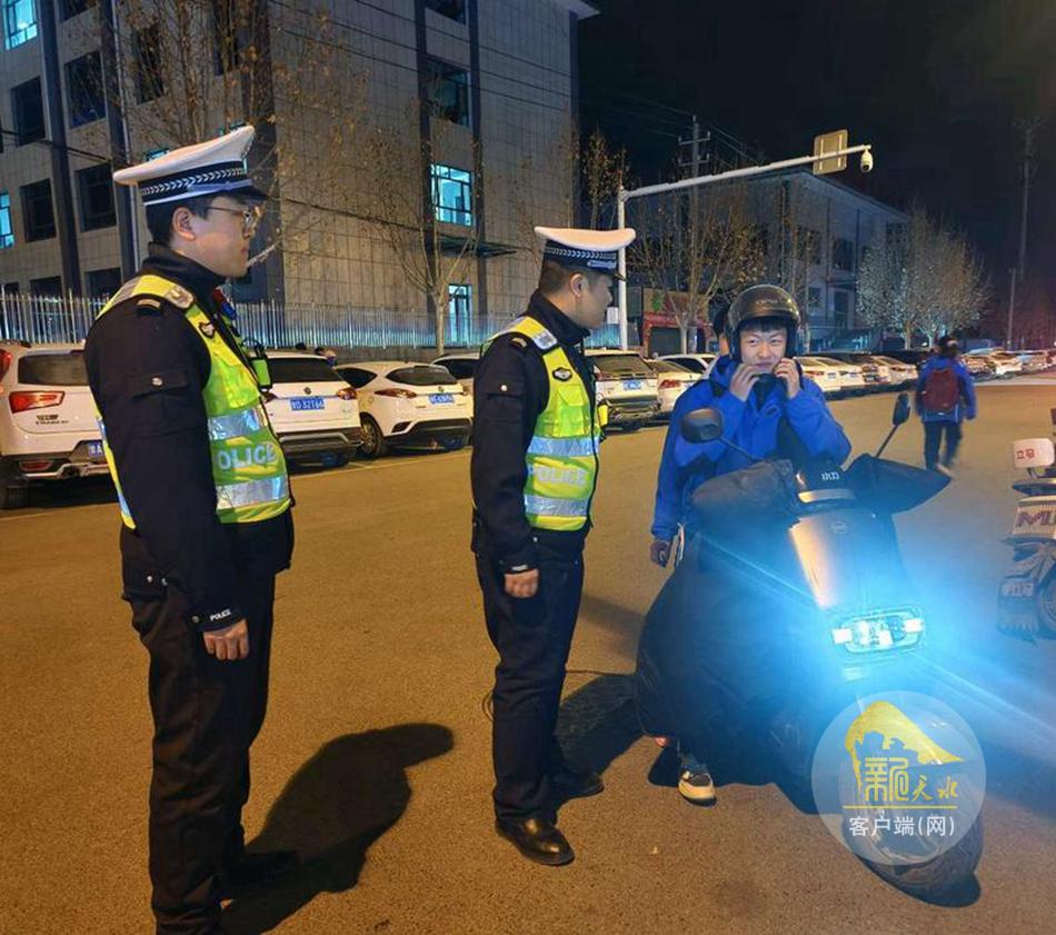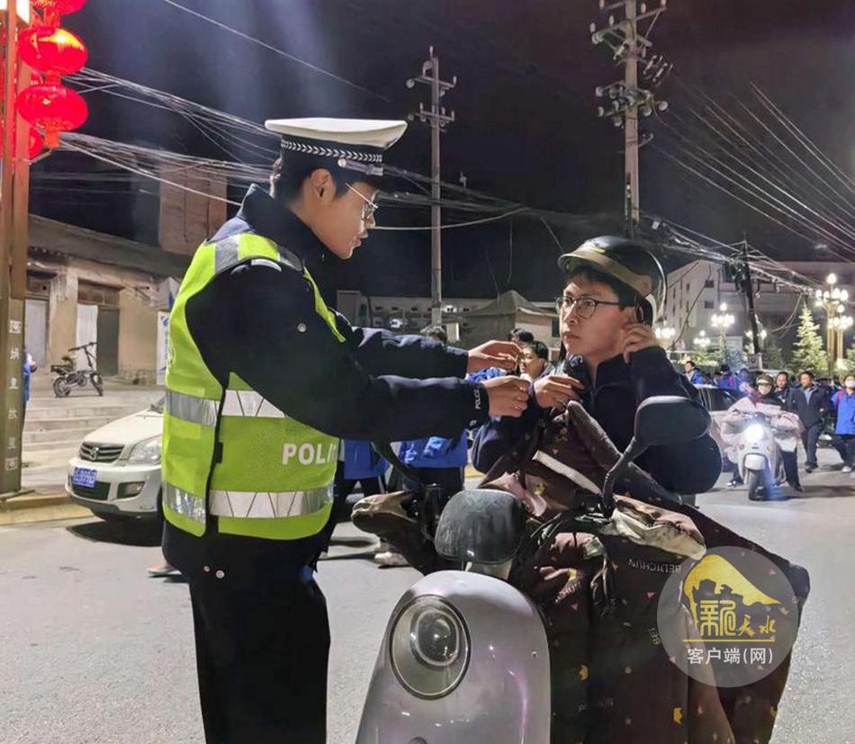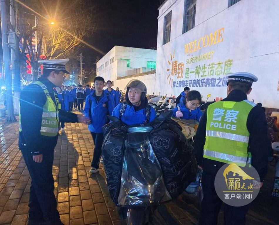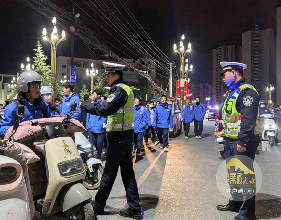 新天水讯【天水融媒通讯员 付芸芸】2月27日晚,秦安县公安局交通管理大队在辖区各初、高中及职业院校周边路段,开展夜间护学任务,重点针对骑行电动自行车的学生群体开展佩戴安全头盔的宣传、劝导及整治工作,以进一步加强辖区夜间道路交通安全管理,切实保障夜间放学时段广大学生的出行安全,预防和减少涉及学生的交通事故。