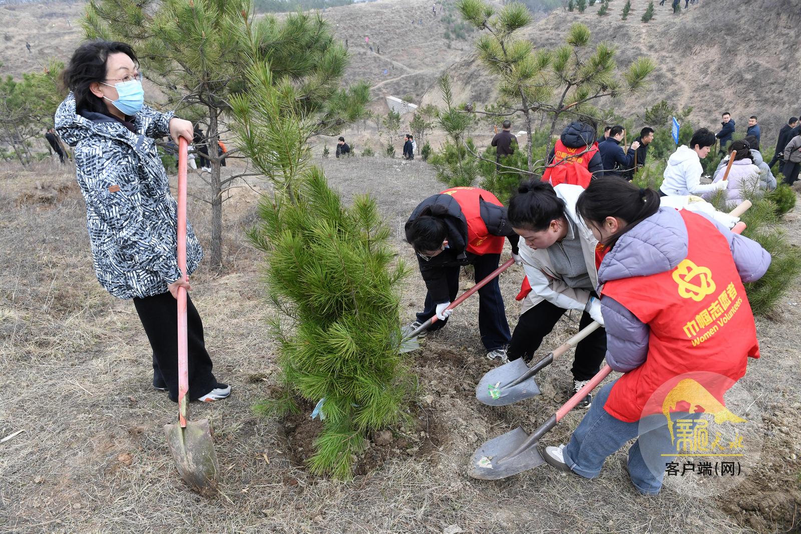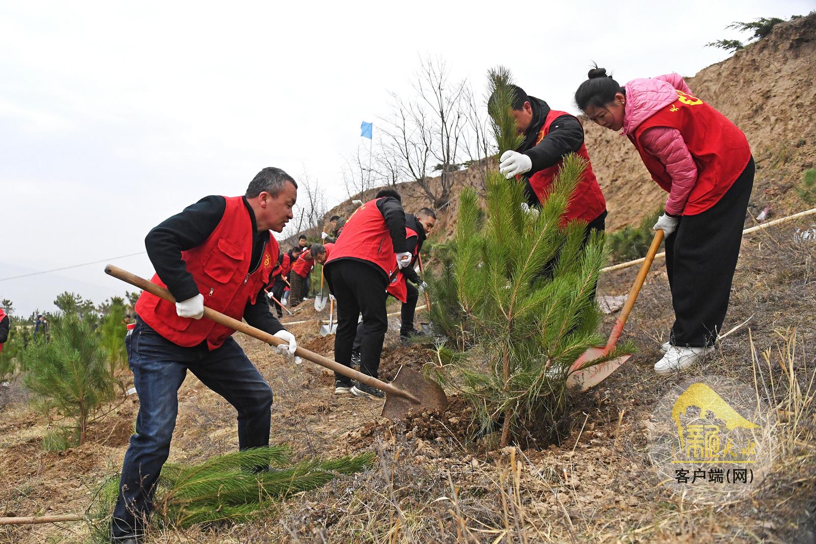 义务植树基地位于麦积区马跑泉镇慕滩村,该基地绿化总面积150亩,规划栽植塔柏、白皮松、油松、龙柱碧桃、山桃、山杏等苗木2.3万株。活动中,大家挥锹铲土、扶苗填坑、踩土定植,现场一派繁忙景象。在春风吹拂下,新栽种的树木昂然挺立、生机勃勃。