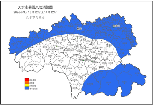 天水市气象局2026年03月13日11时30分发布暴雪蓝色风险预警: