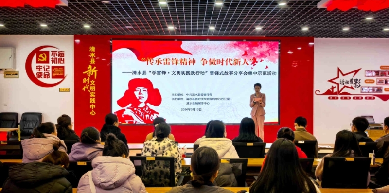 新天水讯 据清水县融媒体中心消息 3月13日,为传承和弘扬雷锋精神,将雷锋精神转化为具体行动,清水县在新时代文明实践中心开展了一场生动的“传承雷锋精神争做时代新人”——雷锋式故事分享会集中示范活动,通过讲述身边榜样、先进典型的感人事迹,让雷锋精神在新时代绽放新的光芒,进一步凝聚向上向善、守望相助的文明风尚,推动文明实践活动走深走实、见行见效。