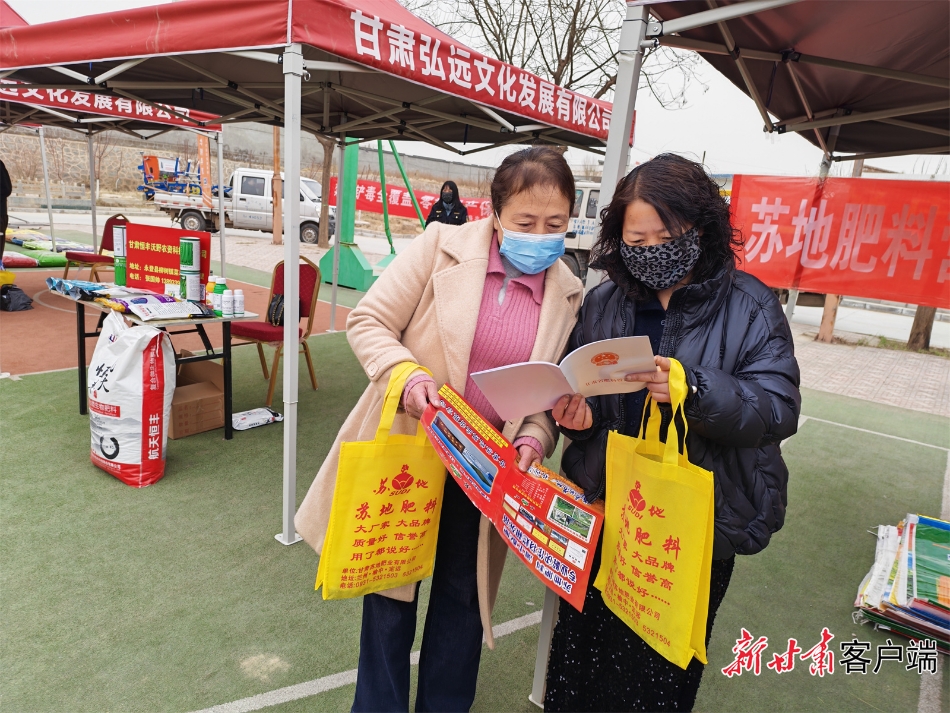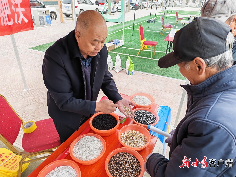 农资经营企业向农户讲解化肥用法。本文图片均由新甘肃·甘肃日报记者 马国顺 摄