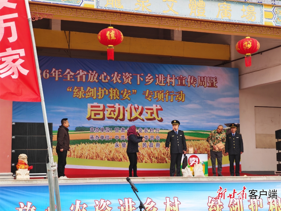 新甘肃客户端3月13日讯(新甘肃·甘肃日报记者 马国顺)春回大地,备耕正忙。2026年甘肃省放心农资下乡进村宣传周暨“绿剑护粮安”专项行动启动仪式今天上午在永登县龙泉寺镇举行。活动紧扣春耕备耕关键节点,聚焦粮食安全和农产品质量安全核心目标,以“零容忍”态度持续加力规范农资市场秩序,保障农业生产安全,维护农民合法权益,为全省农业生产安全筑牢制度防线。