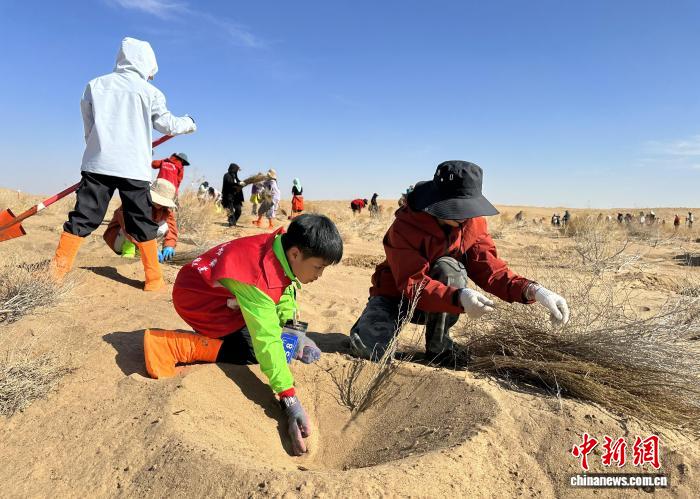 2025年2月,共青团民勤县委联合民勤县种林公益发展中心发起“请到民勤种棵树”公益植树招募令。截至目前,来自天南海北的青年志愿者超过4万人次,种植100多万棵梭梭等沙生植物,完成治沙面积达4500亩。