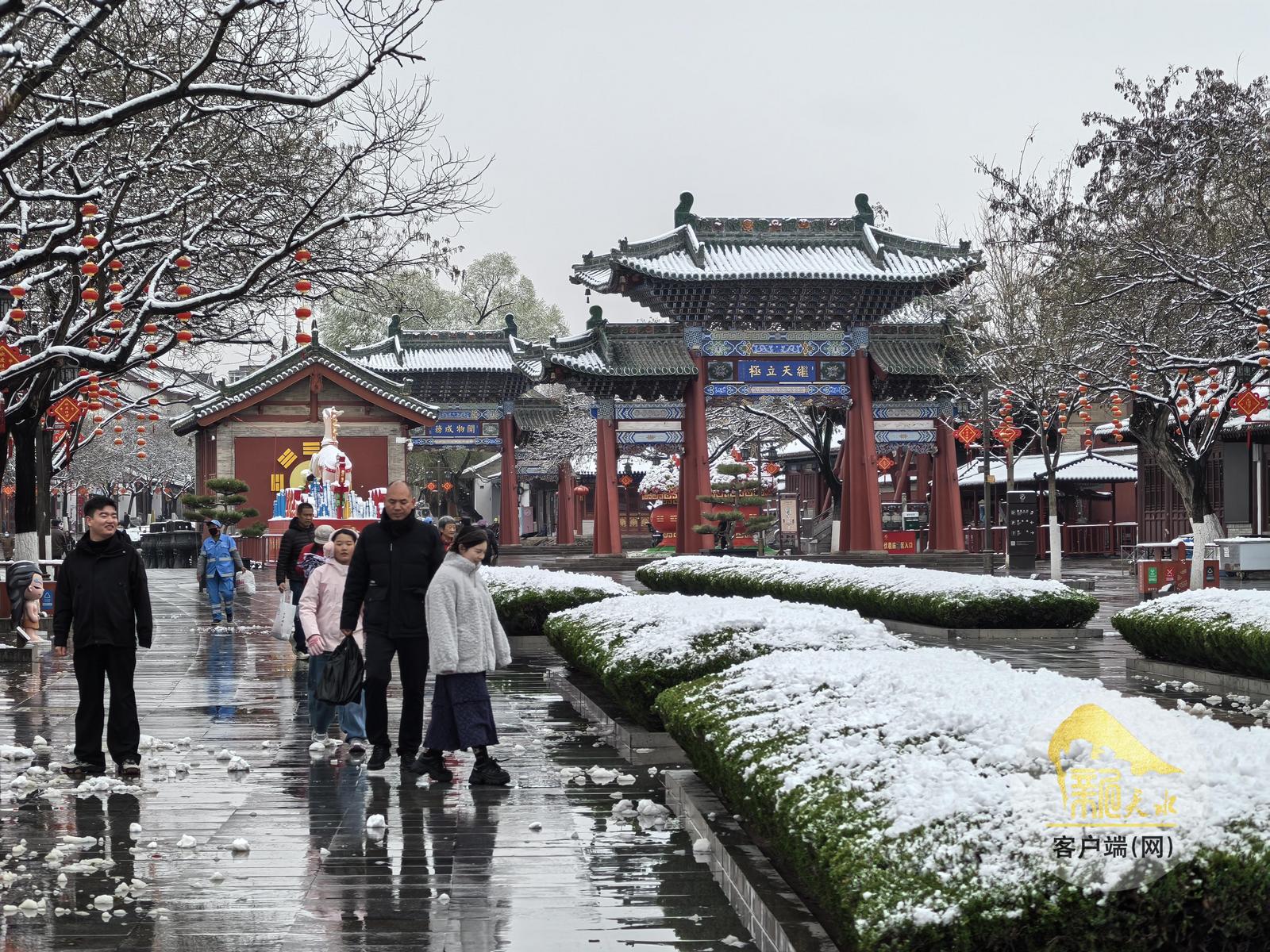 “这是咱们天水春天的第一场雪,我专门到伏羲庙来转转。下了雪以后市里的风景非常漂亮,而且春天的雪对农作物也很好。”刚刚拍完照片的市民何小林说。
