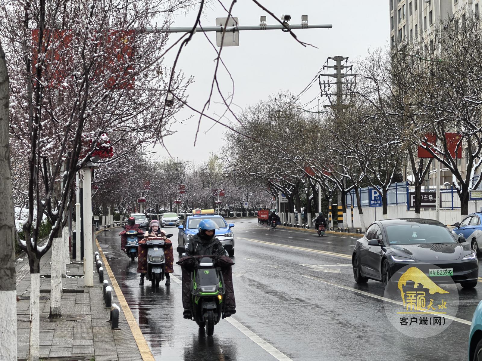 新天水讯【天水融媒记者 曹润彬】受冷空气和西南暖湿气流共同影响,3月13日夜间,天水市迎来2026年春季第一场大范围降雪天气。整个城市银装素裹,大地披上新雪,山川楼宇相映成景,为春日里的天水增添了一抹素雅与灵动。