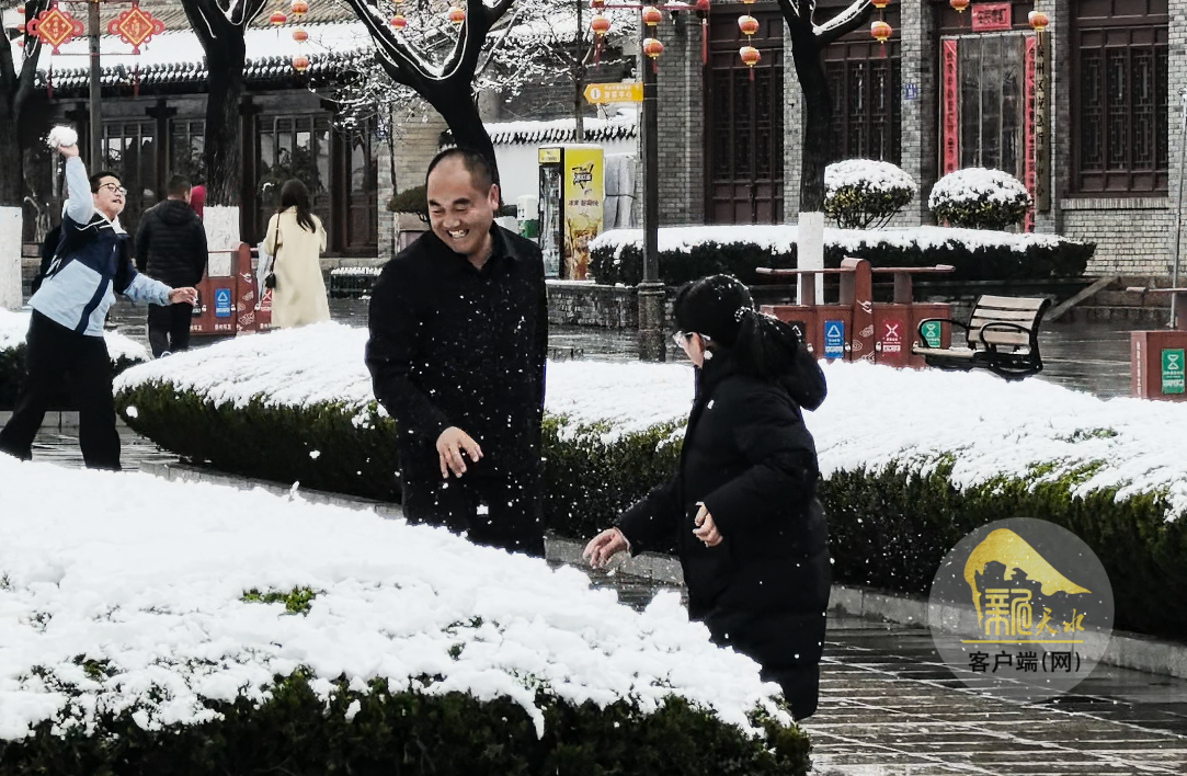 在秦州区伏羲庙附近,古朴的建筑与皑皑白雪相映,树枝上缀满蓬松的积雪。微风拂过,雪沫轻扬,尽显诗情画意。市民纷纷走出家门,赏雪、拍照,定格这份难得的春日惊喜。不少家长牵着孩子的手,以伏羲庙的雪景为背景合影留念,脸上满是对这场春雪的喜爱。