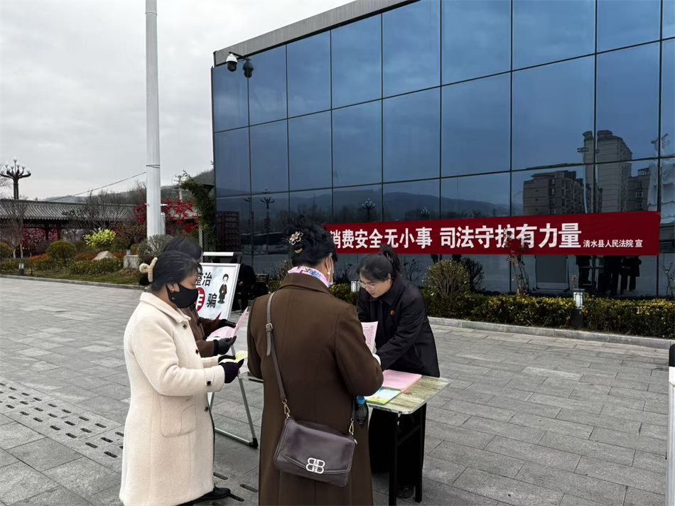 新天水讯 据清水县融媒体中心消息 在3·15国际消费者权益日来临之际,清水县人民法院干警走进轩辕广场,开展以“消费安全无小事 司法守护有力量”为主题的法治宣传活动,以司法力量守护群众消费安全。
