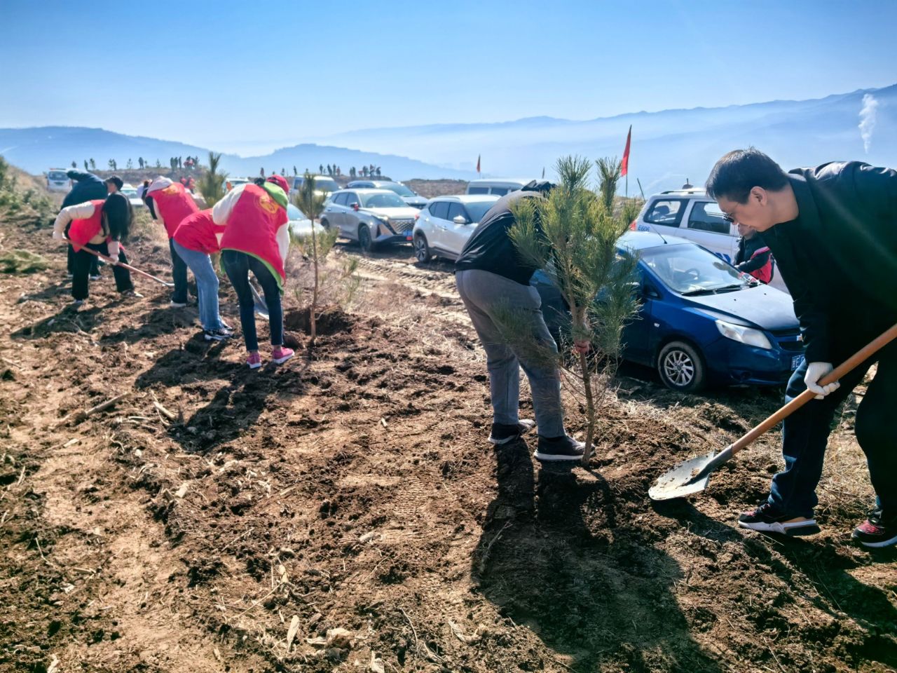 劳动中,全体干部职工不怕苦、不怕累,热情高涨、精神饱满,大家挥汗如雨却笑容满面,相互配合、相互鼓劲,既体验了劳动的快乐,也感受了植绿的意义。经过一上午的辛勤劳作,一排排新栽的苗木迎风挺立、错落有致,为初春的大地增添了勃勃生机,也为县域生态文明建设播下了希望的种子。