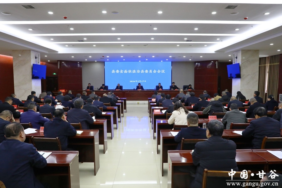 新天水讯 据甘谷县融媒体中心消息 3月17日,甘谷县委全面依法治县委员会召开会议,深入学习贯彻习近平法治思想和习近平总书记对全面依法治国工作作出的重要指示精神,全面贯彻落实中央依法治国工作会议精神和省、市委有关会议要求,盘点总结成绩,分析存在问题,研究部署重点任务。会议审议了《2026年全面依法治县工作要点》《2026年法治为民办实事项目清单》。