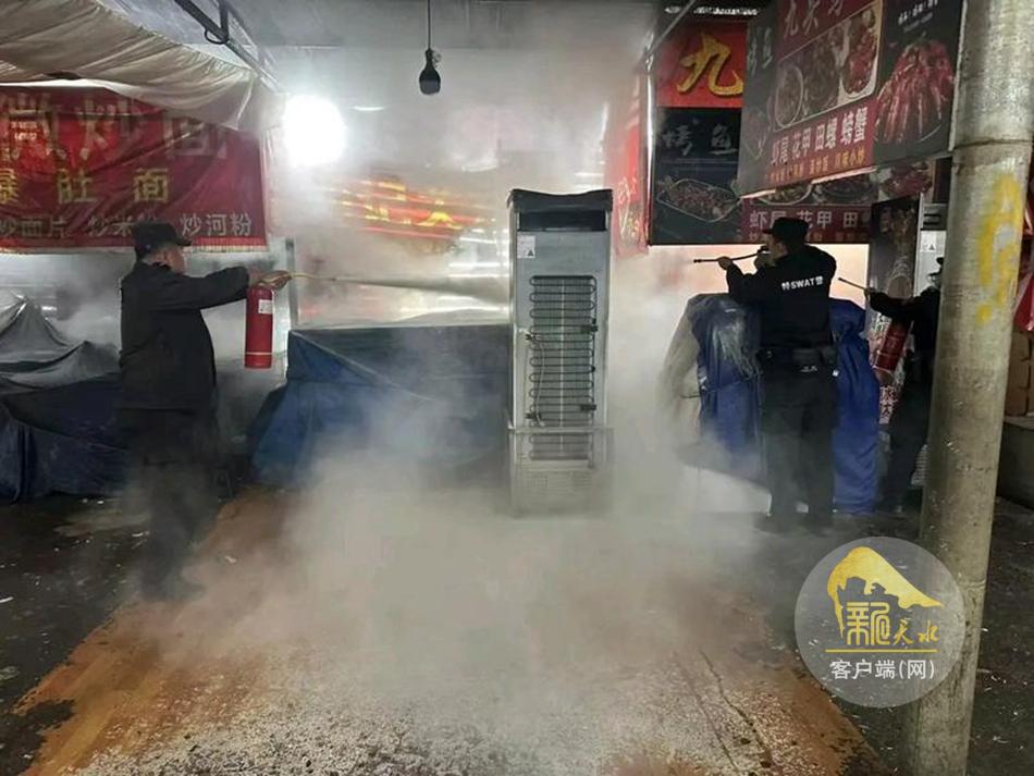 当日下午3时23分,甘谷县公安局特警大队巡逻组4名队员巡逻至一便民市场附近时,发现一摊位突发火情。4人迅速反应,立即疏散围观群众、上报指挥中心,并就近寻找灭火器材进行扑救,成功将明火扑灭。随后,特警队员对现场进行排查,将摊位附近的液化气罐及其他易燃物品转移至安全区域,消除复燃隐患。确认现场安全后,4名队员按工作规范将情况移交赶来的市场管理人员,随后恢复巡逻勤务。
