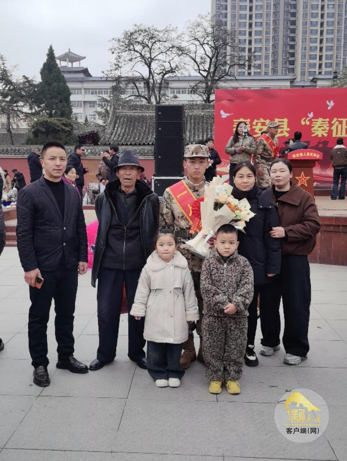 “我是中国人民解放军军人,我宣誓……”3月16日上午,在秦安县兴国文化广场举行的秦安县“秦征虎兵”新兵欢送暨出征仪式上,来自西川镇神明川村的20岁新兵乔鹏和其他新兵佩戴绶带红花,高举右拳郑重宣誓,许下了铮铮诺言。
