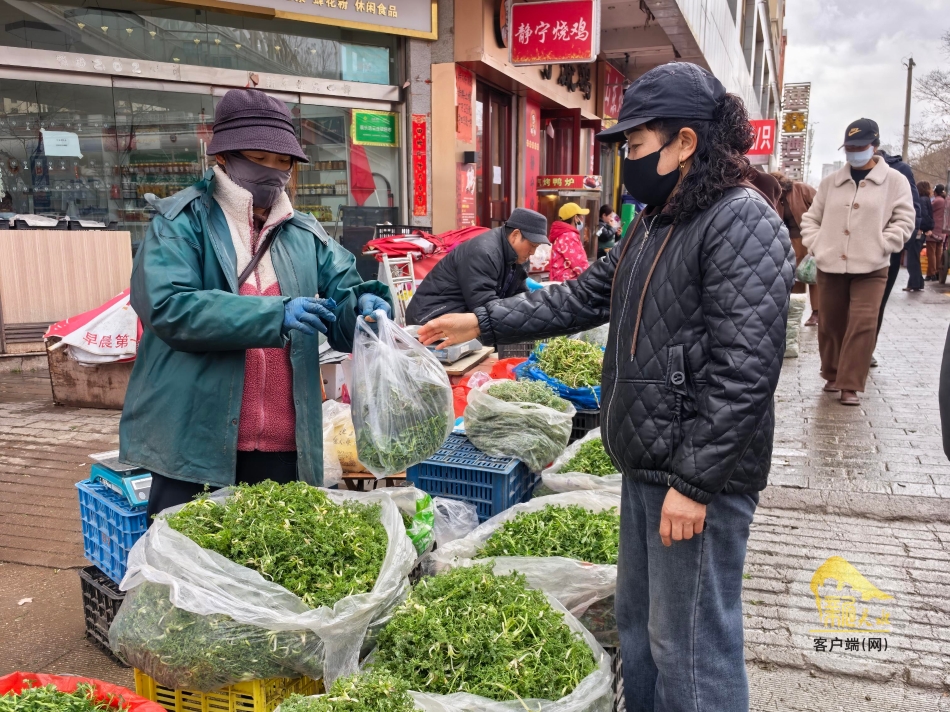 摊位上选购野菜的顾客络绎不绝,王艳就是其中一位。她说:“每年春天我们家都要买点野菜,吃个鲜味。拌凉菜、包饺子、包馄饨都好吃,一吃到这些新鲜野菜,就觉得春天真的来了。”