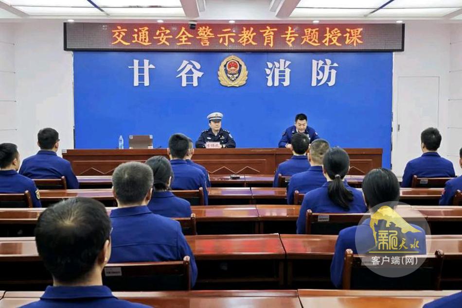 新天水讯 近日,甘谷县公安局交通管理大队民警深入县消防救援大队,为全体消防救援指战员及消防车驾驶员开展交通安全专题宣讲,通过警消协作,共同守护应急救援力量平安出行。