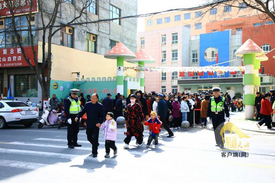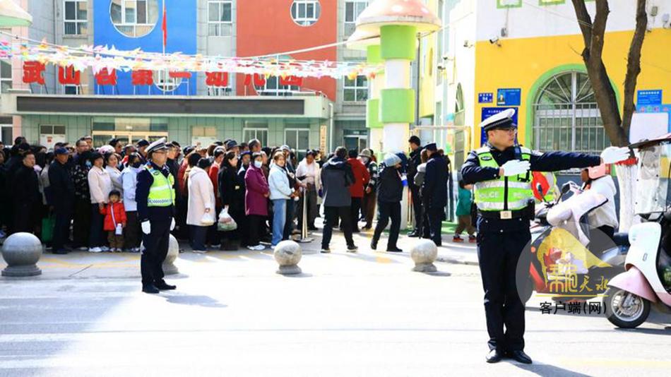 放学铃声响起,武山县第一幼儿园门口人流、车流骤增。该大队民警提前到岗,他们身着反光背心,在斑马线两侧、校园路口有序站位,一边指挥过往车辆减速避让、规范停放,一边贴心护送学生安全过马路,耐心引导家长有序接送,现场交通秩序井然。“他们不管风吹雨打,每天都按时认真执勤,为幼儿园的安全提供了坚实的保障,我们心里感到特别踏实,也觉得很温暖。”说起校门口的“护学岗”,武山县第一幼儿园园长杨爱平满是感激。