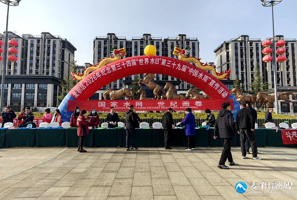 新天水讯 据麦积区融媒体中心消息 春风送暖,护水同行。3月22日,在第三十四届“世界水日”和第三十九届“中国水周”到来之际,麦积区水务局联合黄委天水水文水资源勘测局、区卫健局等单位,在马跑泉市政广场举行2026年“世界水日”“中国水周”集中宣传活动。活动围绕“水与性别”“国家水网 世纪画卷”主题,以惠民互动的形式向群众普及水资源保护知识,营造全民节水护水的良好氛围。