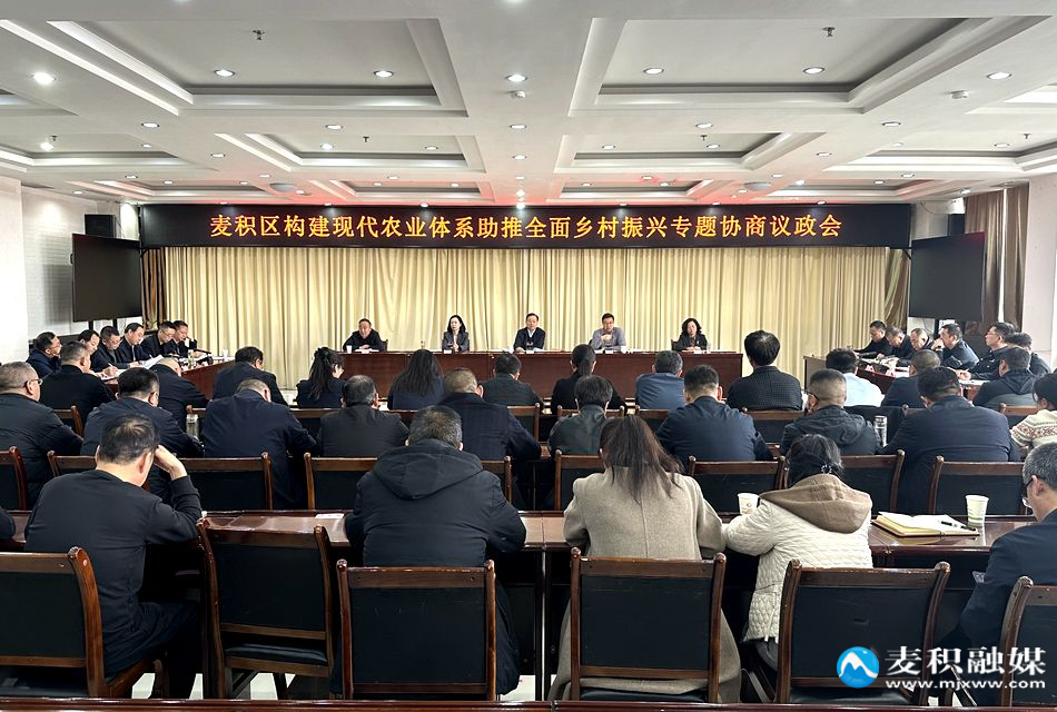 新天水讯 据麦积区融媒体中心消息 为深入学习领会习近平总书记关于三农工作的重要论述,紧扣中央一号文件精神,围绕当前我区农业农村发展的重要问题等深入开展调查研究,积极建言献策,3月23日,麦积区政协召开构建现代农业体系助推全面乡村振兴专题协商议政会,区政协党组书记、主席高志强,区政府副区长赵锦鹏出席会议并讲话,区政协副主席兰春梅、张建凤、石根才出席会议。