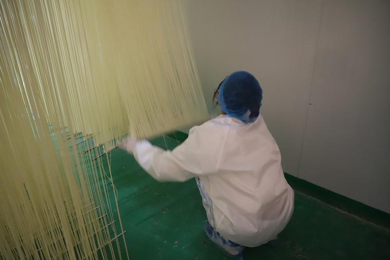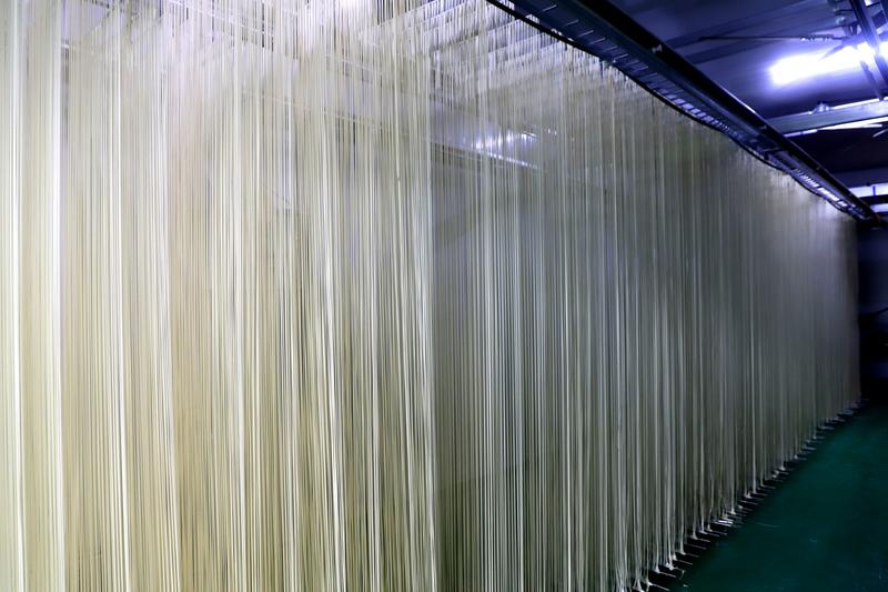 走进轩禾源麦食品加工有限公司生产车间,自动化流水线高效运转,和面、盘条、醒面、压片、切条、拉伸、烘干、包装等工序衔接有序,工人们身着统一工作服在岗位上各司其职,车间内处处弥漫着浓郁的麦香。晾晒架与低温烘房里,整齐悬挂的挂面在精准控温控湿的环境中自然风干,既保留了传统挂面的手工质感,更彰显着现代化生产对品质的严格把控。
