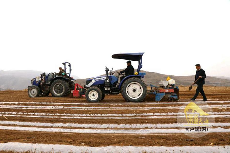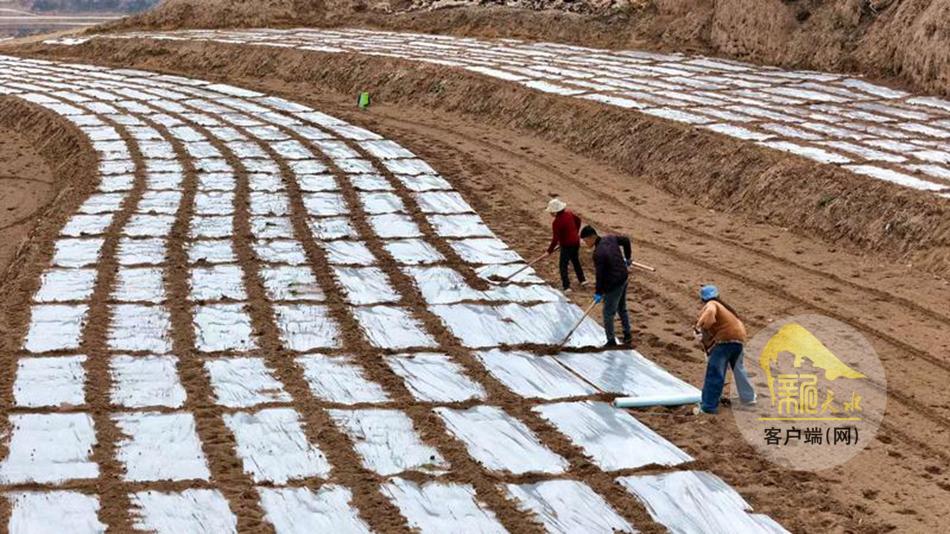 新天水讯【天水融媒通讯员康正东 王正平 管秋勇】春分已过,武山县马力镇的高寒山区依然寒意未消,但远中村万亩粮饲兼用玉米示范基地里已是一派热火朝天的景象。大型拖拉机在田间轰鸣穿梭,犁地、铺膜、施肥一气呵成。覆膜后的梯田泛着银光,宛如层层叠叠的“五线谱”。这片曾因高寒干旱撂荒的“贫田”,经过群众10年精心耕种,如今已成为万亩玉米的“绿色粮仓”,更成为山区农业现代化的“试验田”。