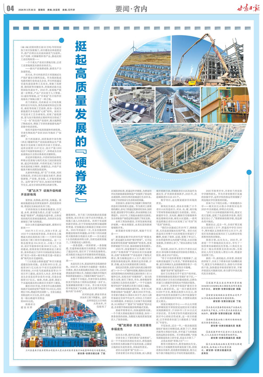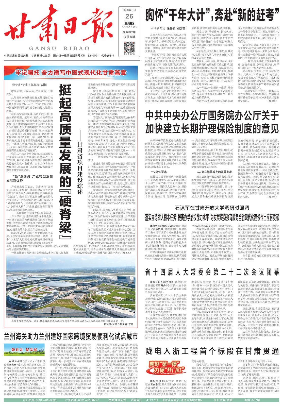 基础牢则事业兴,经脉通则格局新。一个个重大基础设施项目的推进,如同一条条强劲的动脉,为陇原大地高质量发展注入了强劲动能。