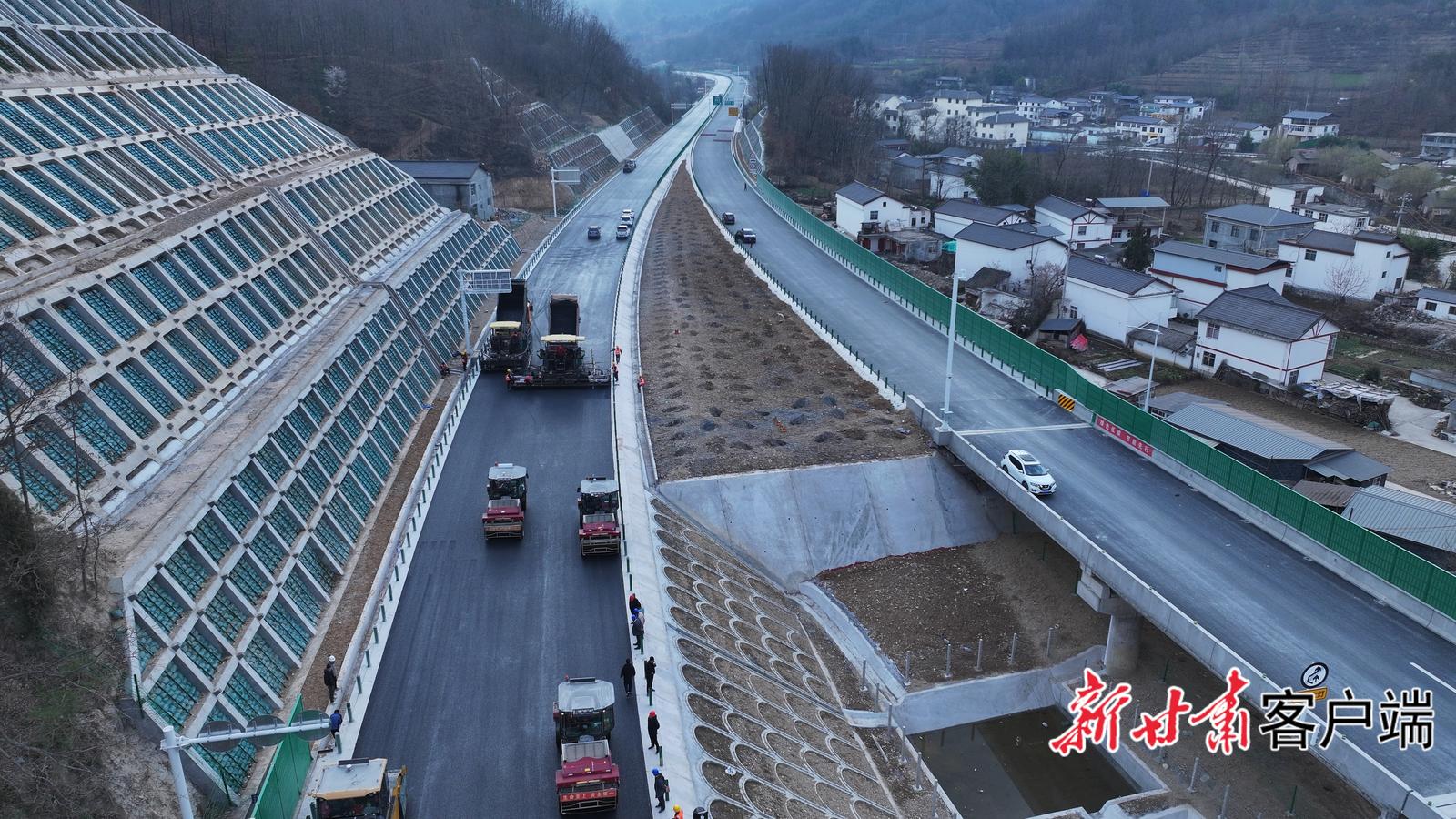 康略高速公路二期项目路面标段进行沥青面层施工。 新甘肃·甘肃日报通讯员 陈勇