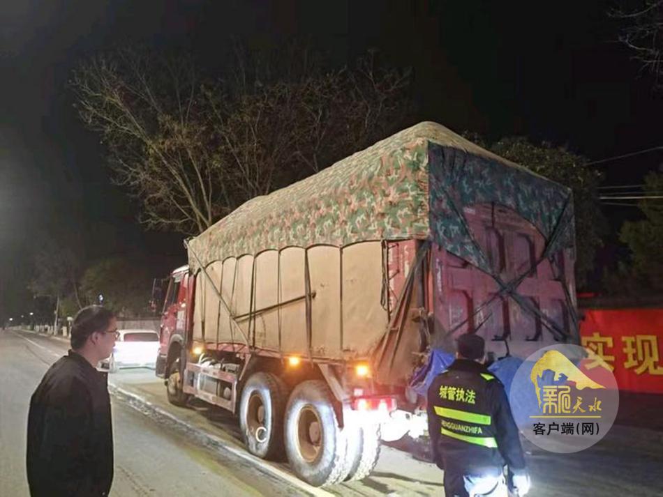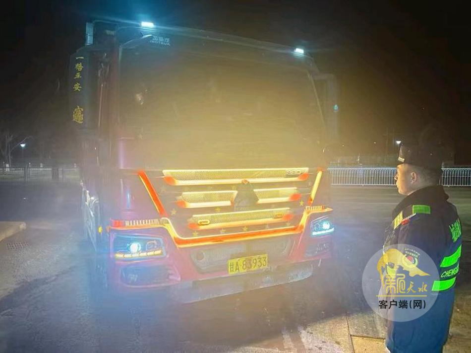 麦积区城市管理执法局直属一组在日常巡查中发现,夜间部分渣土车在运输过程中未采取有效的密闭措施,导致渣土撒漏现象严重,污染路面,影响了市容市貌整洁。该组立即采取定点设卡与流动巡逻管控相结合的方式,对羲皇大道、成纪大道等重点路段上路行驶的渣土运输车辆“逢车必查”,严查渣土车辆密闭不严、“抛洒滴漏”、车身不洁等违规行为,对情节严重者限期督促整改,对整改不到位的车辆依法从严处理。