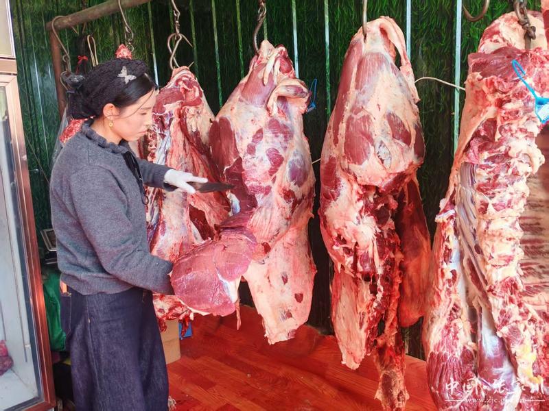 年轻一代也接过了这本“养牛经”。侄子马杰和嫂子一起经营家庭农场和牛肉铺子,成为懂技术、会经营的新一代养牛人。在和马杰交谈中得知,虽然肉铺开在家里面,销量却格外喜人,平常一天能卖2头现宰鲜牛,春节旺季一天能卖到8头,新鲜好肉深受乡邻欢迎。靠着养牛卖肉,一家人盖起了两层小楼,真正从“糊口”过上了小康日子。