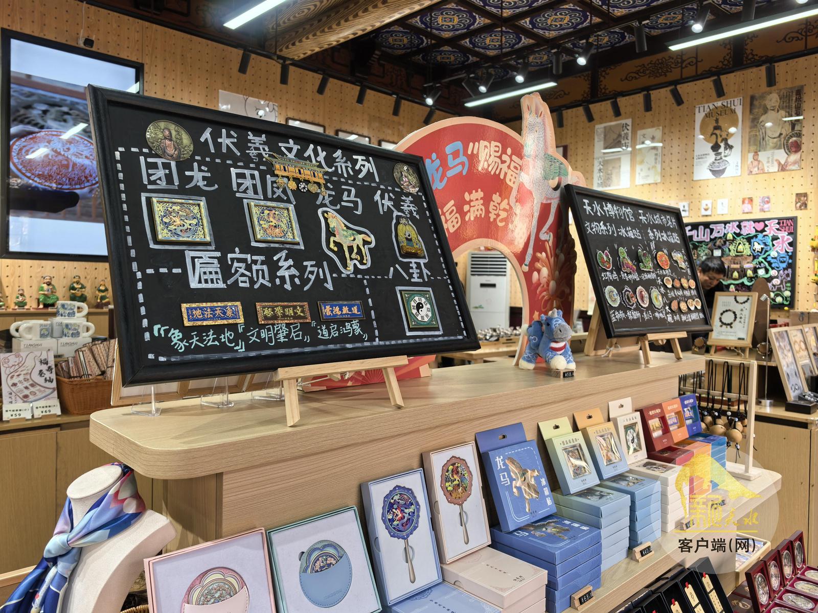 被誉为“中华第一庙”的天水伏羲庙,是我国现存最完整、建筑年代最早的伏羲祭祀建筑群,承载着厚重的人文根脉。走进伏羲庙文创商店,龙马造型的毛绒玩具、团龙团凤的木质窗花摆件、正殿匾额样式的冰箱贴等文创产品琳琅满目。今年是马年,依托伏羲庙内龙马雕像和“龙马负图”的古老传说,一套龙马主题文创产品应运而生。