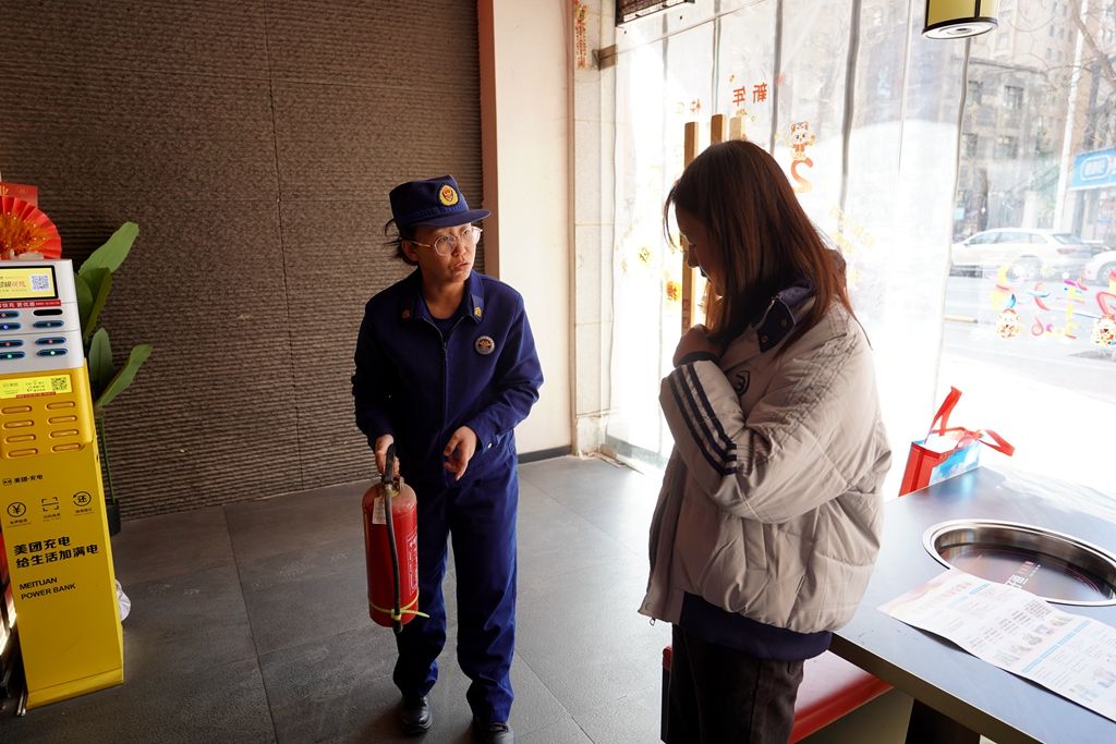针对“九小场所”从业人员消防技能薄弱的问题,宣传人员现场开展灭火器实操教学,详细演示“提拔握压”四字操作口诀,讲解灭火器压力检查、保险销拔除、火源根部瞄准等关键步骤,并邀请经营户亲手操作,及时纠正不规范动作,确保大家真正掌握初期火灾扑救要领。