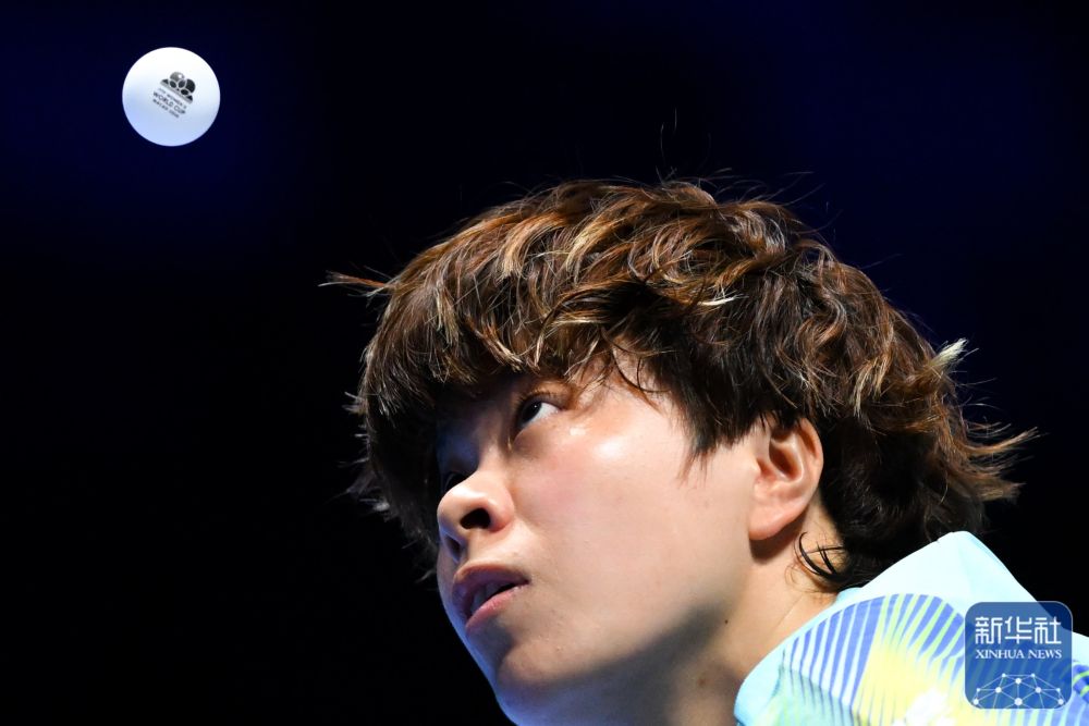 ↑日本选手伊藤美诚在女子单打小组赛中回球。最终,她3比2战胜加拿大选手张默。