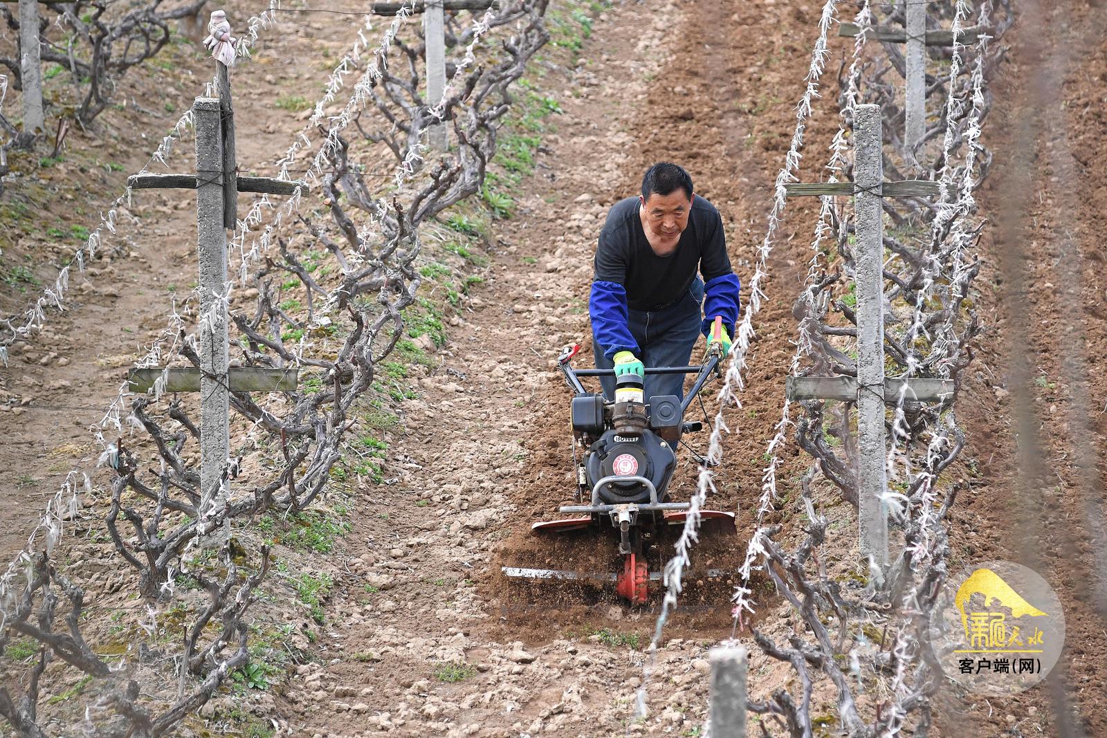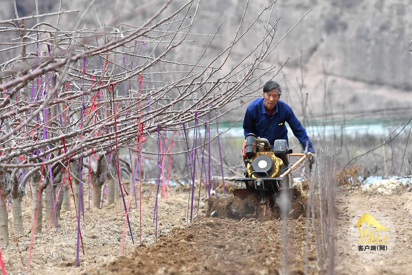 日前,记者走访了麦积区马跑泉镇、伯阳镇和秦州区太京镇。公路两旁的田地果园里,农民们操作着旋耕机翻耕土地,剪枝嫁接、施肥喷药,一派繁忙景象。(天水融媒记者 孙镇 摄)