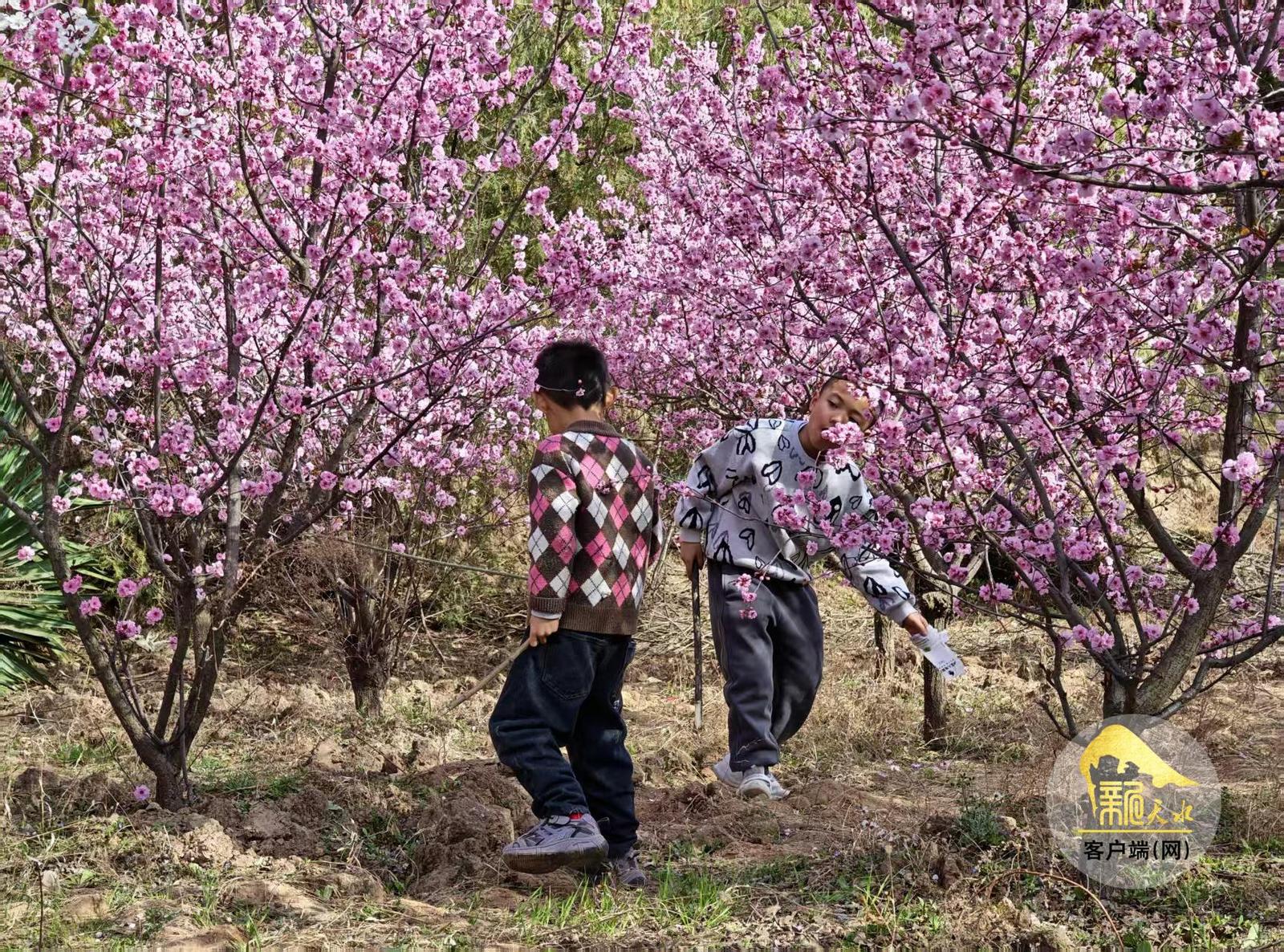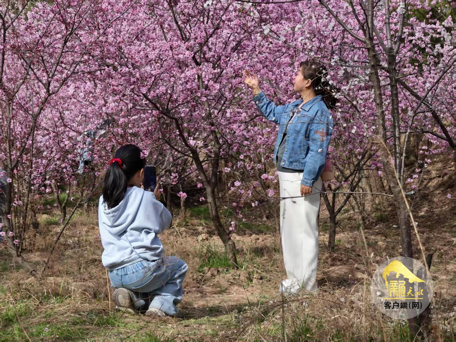 近日,秦州区豹子沟植物园里的美人梅盛开,近看粉红的花瓣层叠簇拥,远眺红云如烟似雾,美不胜收。