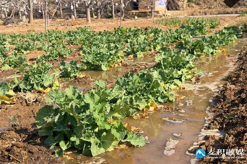 “今年种了油菜,还种了些大蒜。眼下浇好这第一遍春水,就是为了保障作物增产。大蒜也是头一回浇灌,今年肯定能迎来好收成!”毛孝飞笑着说。他熟练地将化肥撒播在田间,水流顺势均匀漫过整片土地,“现在我们采取的是水肥一体化,化肥撒了,水也浇了,收成绝对差不了!”他笑着指向脚下的水渠,“我们这里浇水方便得很,想浇的时候随时就能浇,水一直流着呢。”