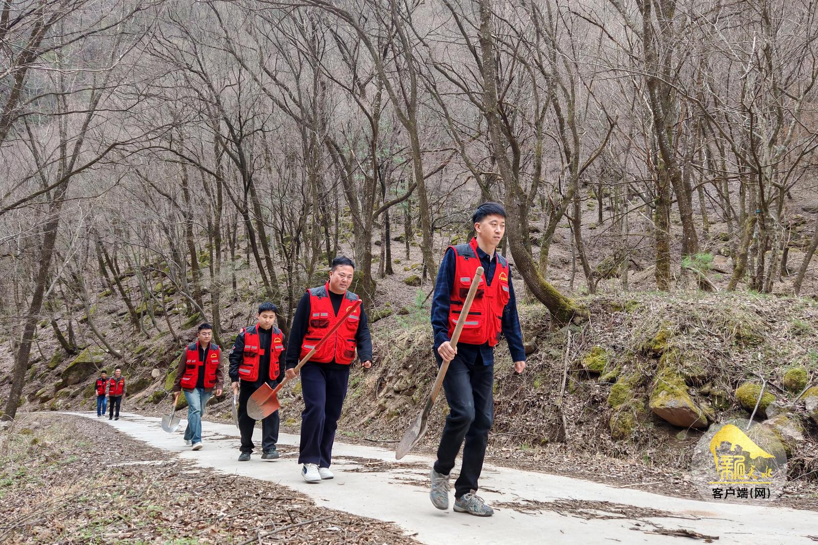 在麦积区三岔镇的立远林场,林地资源丰富,是重点管护区域。3月27日,一支由党员干部和护林员组成的巡逻队正沿蜿蜒山路展开“拉网式”巡查。身着橙色护林服的队员们手持防火工具,穿梭于林间小道,全天候监测林区动态,确保发现火情时能第一时间处置。