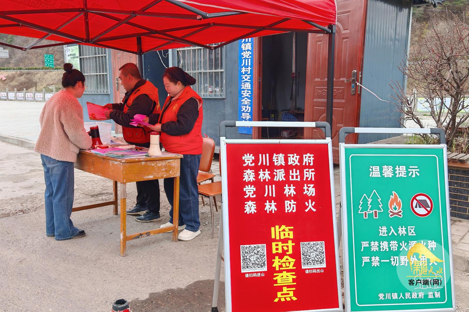 在卡点执勤的党川镇花庙村党支部书记任永生说:“我们严控火源入口,实行24小时专人值守,严格执行‘逢车必查、逢人必检’,全面收缴火种、香烛、鞭炮等易燃物品,坚决杜绝火源进山入林。”