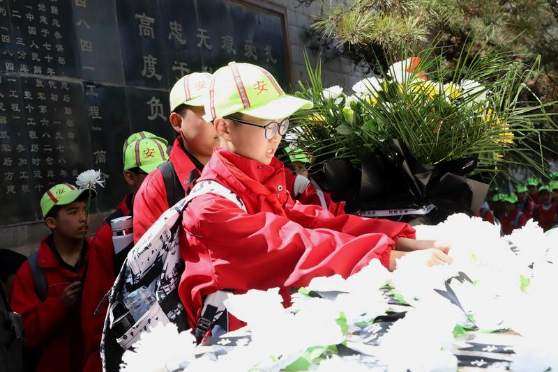 抵达烈士陵园后,祭奠仪式庄重举行。在雄壮的国歌声中,少先队员整齐行礼;随后学生代表敬献花圈,全体师生鞠躬默哀,深切缅怀革命先烈。校相关负责人进行讲话,勉励同学们传承英烈精神、勇担时代重任。学生代表进行了主题朗诵,铿锵誓言回荡在陵园上空;最后全体学生庄严宣誓,立志以青春之力报效祖国。仪式结束后,师生们瞻仰烈士陵园,敬献亲手制作的小白花,轻轻擦拭陵园简介石壁上的灰尘,在历史印记中感悟革命精神,接受深刻的思政教育。