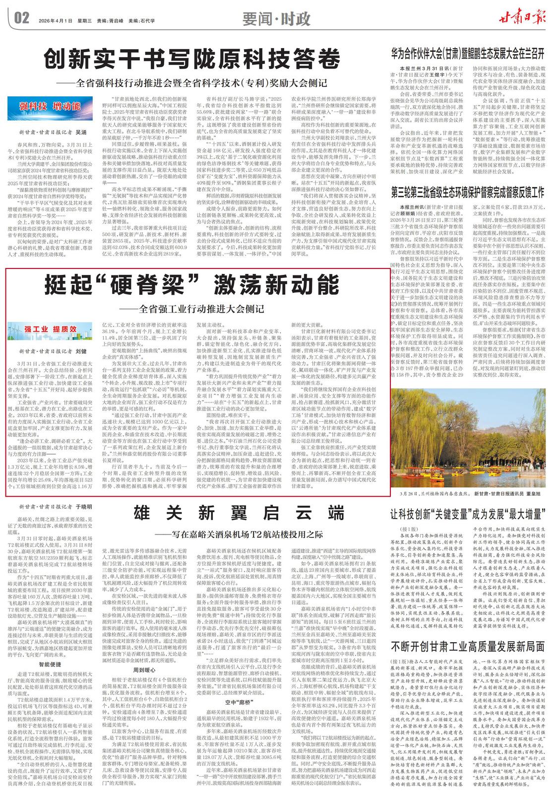3月31日,全省强工业行动推进大会在兰州召开。大会总结经验、分析问题,安排部署下一阶段工作,在新起点上纵深推进强工业行动、加快建设工业强省,为全省“十五五”开好局、起好步提供坚实支撑。