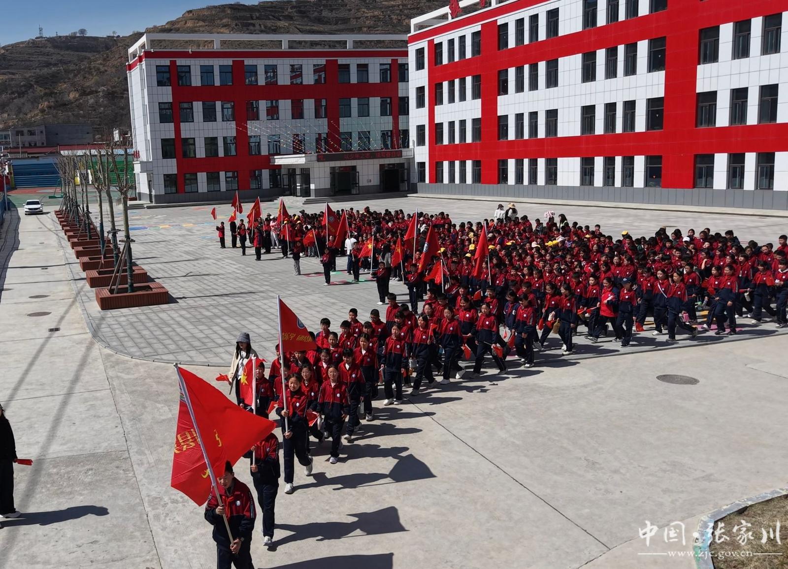 新天水讯 据张家川县融媒体中心消息 清明节前夕,张家川县实验小学组织高年级全体师生,开展“缅怀先烈志,徒步忆征程——传承红色基因,践行绿色使命”主题教育活动。300余名师生徒步5公里,通过“走一段长征路、唱一首长征组歌、画一幅长征主题画、做一件环保事、诵一篇经典诗”的五个“一”实践形式,将红色教育与生态理念深度融合,在行走的课堂中感悟革命精神,厚植爱国情怀。