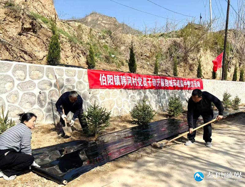 在伯阳镇韩河村,环境整治现场热火朝天,村民们有的挥锹铲草,将路边杂草清理得干干净净;有的俯身铺设地膜,为刚栽种的绿化带保墒增温;有的细心整理路肩,让原本参差的边缘变得平整顺直。大家分工协作,配合默契,个个干劲十足。