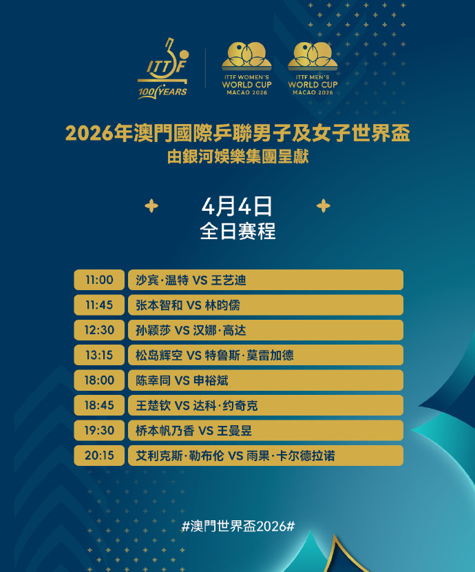 女单赛场,四名中国队选手出战,孙颖莎对阵汉娜·高达,王艺迪迎战沙宾·温特,陈幸同和王曼昱分别面对申裕斌和桥本帆乃香。