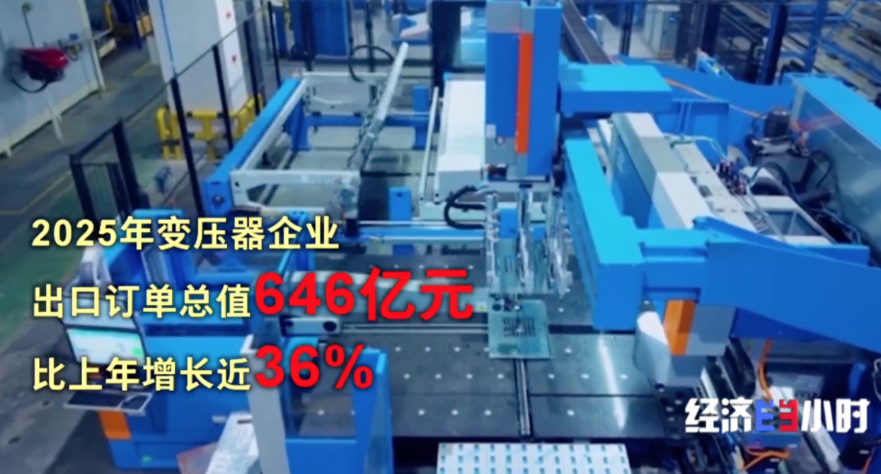 2025年我国变压器企业出口订单总值达到了创纪录的646亿元,比上年增长近36%。主要原因是人工智能发展催生的电力需求巨大。