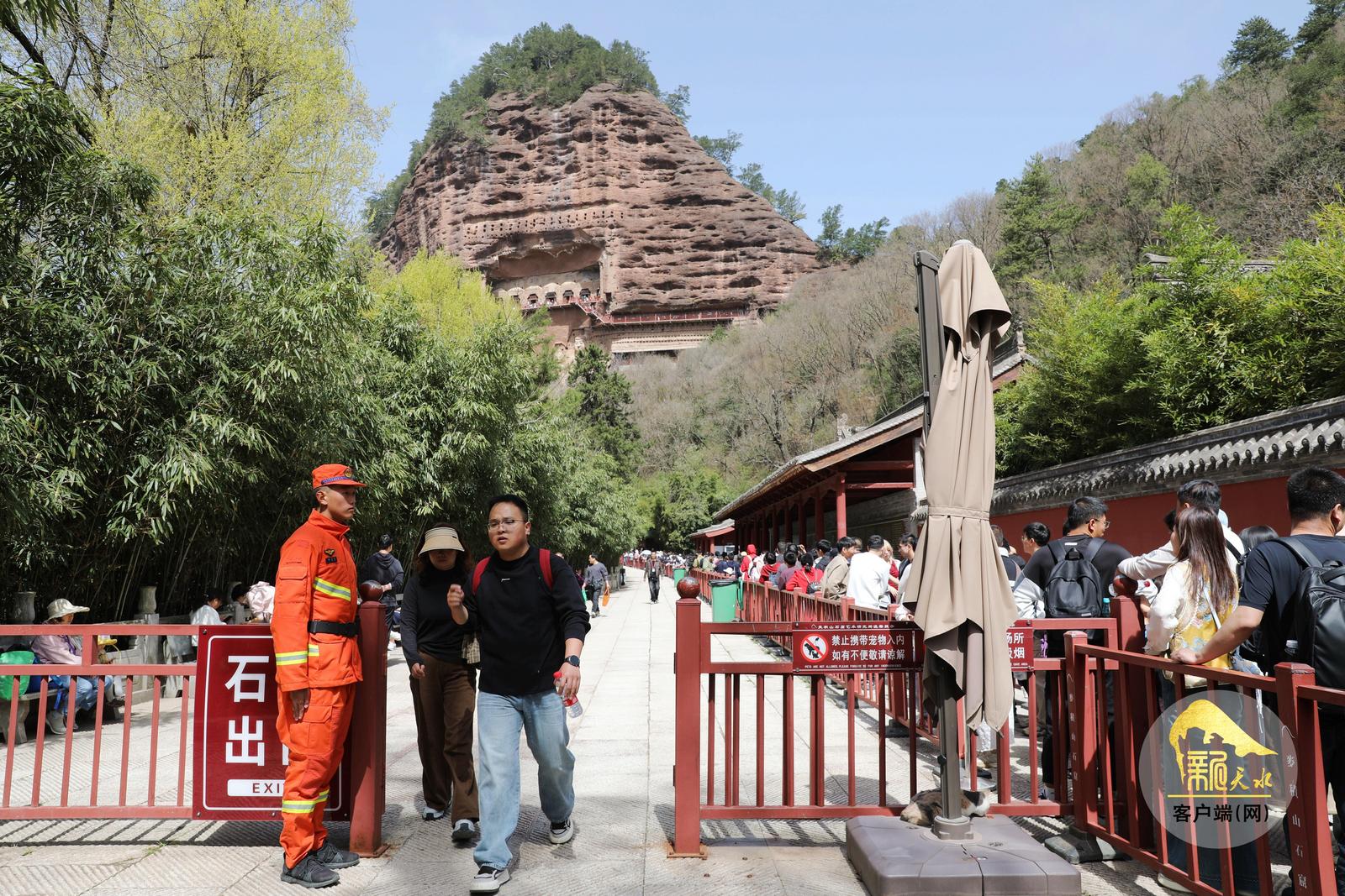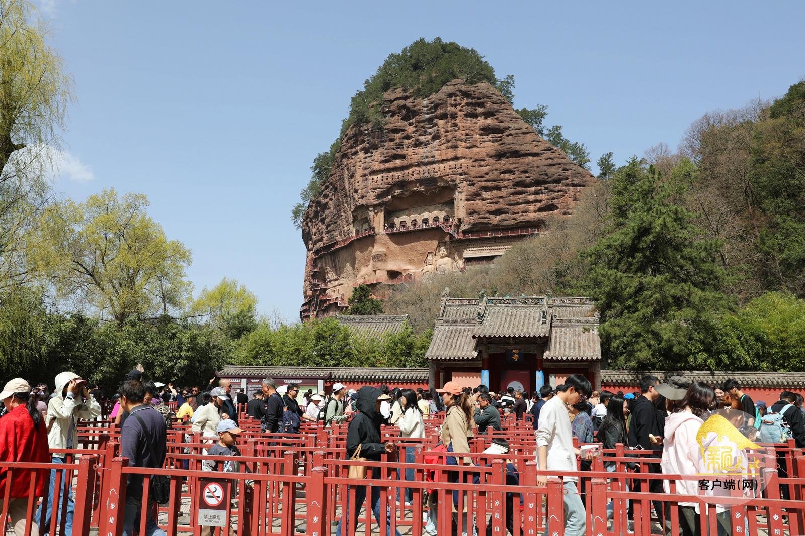 清明假期首日,麦积山大景区春意盎然,千年石窟与山间春色相映成趣。各地游客们踏青赏景,沉醉于石窟文化魅力,景区内人头攒动却井然有序。