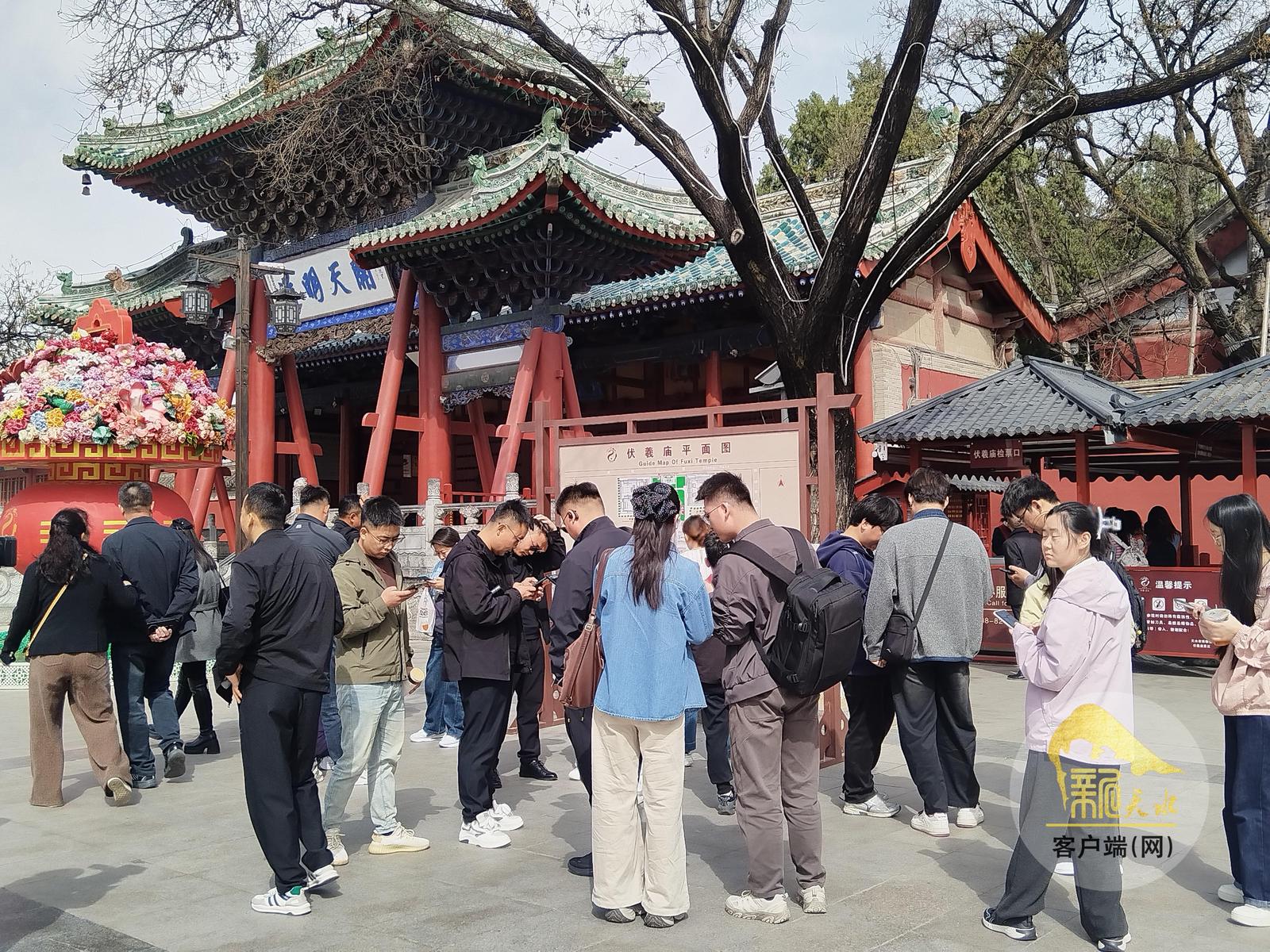 4月4日上午,记者来到天水伏羲庙景区看到,无论是游客服务中心售票处,还是检票口,已经有许多游客排队购票、有序进入景区参观。在景区工作人员、志愿者的引导下,景区秩序井然。